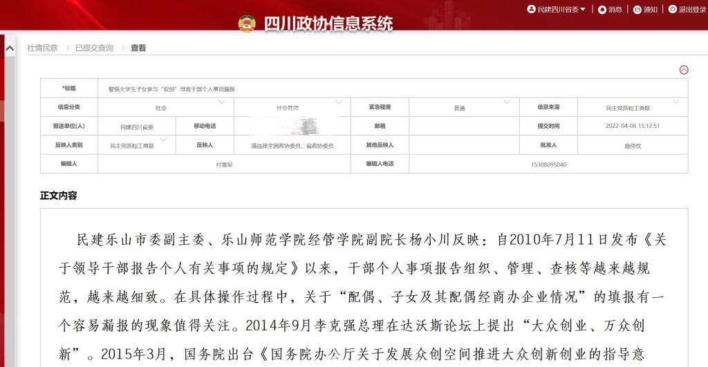 《警惕大学生子女参与“双创”导致干部个人事项漏报》于4月8日,省政协采用报送全国政协第311期。