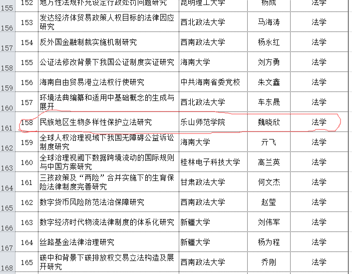 本网讯(文、图/魏晓欣)近日,全国哲学社会科学工作办公室公布了2022年度国家社会科学基金年度项目、青年项目、西部项目等立项结果。我院获准西部项目立项1项,为魏晓欣博士申报的“民族地区生物多样性保护立法研究”。这也是法管学院第7年获国家社科基金项目立项资助。