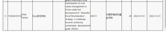本网讯(文、图/罗富民)近日,国家自然科学基金委公布了2022年外国学者研究基金项目评审结果。我院外籍博士ShahFahad申请的国家自然科学基金管理学部项目喜获立项。该项目主要以美丽乡村建设和乡村振兴战略为背景,基于实现乡村可持续发展目标面临的挑战,研究中国农村废弃物的优化管理问题。Shah Fahad博士毕业于西北农林科技大学,长期从事农村环境问题和可持续发展研究。自2020年到校工作以来,已经在SSCI、SCI等来源期刊上以第一作者发表4篇论文,提前完成了聘期的科研任务。本次国家自然科学基金项目的成功立项,是学校在管理科学领域首次获得国家自然科学基金项目。