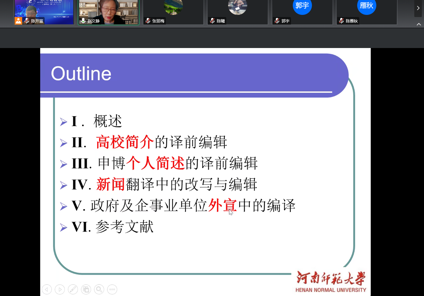 赵教授首先谈到了外宣翻译中“忠实”的内涵,强调在对外交流中,“忠实”既非philological语文学范式,也非linguistic语言学范式,而是文化功能范式。很多情况下,最理想的翻译并不是将原文逐字逐句转换,而要考虑到新受众在阅读和接受习惯上的差异,有针对性地对原文做适当的编辑与改写。若是原文不符合新受众的思维习惯,那么译文越忠实,接受效果越差。随后,赵教授结合多个翻译实例,阐述了在高校简介、申博个人简述、新闻翻译、政府及企事业单位外宣等方面编辑与改写的重要性和必要性。最后,赵教授指出,对外交流中翻译质量直接影响到中国对外形象,双文化甚至比双语更重要,译者不仅要bilingual还要bicultural。只有充分考虑新受众新读者的接受度,中国优秀传统文化才能更好地走出去。
