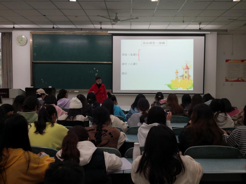 本网讯(文/图 王柯芦)11月22日上午,外国语学院“实践能力提升”第三场专题讲座顺利举办。本次主讲嘉宾是乐山七中英语骨干教师唐志群老师。唐老师以“英语课堂三部曲”为题为英语专业2021级全体学生展开了一场生动的课堂演绎。
