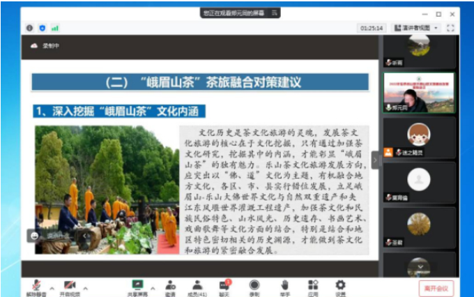 上午的主旨报告分别由泰山学院副校长王雷亭教授与泰山研究院副院长张琰教授主持,我校四川旅游发展研究中心主任郑元同教授做了题为《“峨眉山茶”茶旅融合发展研究》的主旨报告;下午的发言讨论分别围绕着世界名山研究和文旅融合发展两个主题展开,我校旅游与地理科学学院孙永兴副教授与冯晓兵老师分别做了《峨眉山玄武岩与台状山地地貌》《乐山市旅游景区经济联系和空间结构特征分析》的学术报告。会议闭幕式由泰山学院党委委员、副校长王雷亭教授主持,泰山研究院副院长聂立申教授对会议进行了总结,同时确定下届会议由我校承办,我校党委常委、副校长江滔教授在会议闭幕式上致辞。