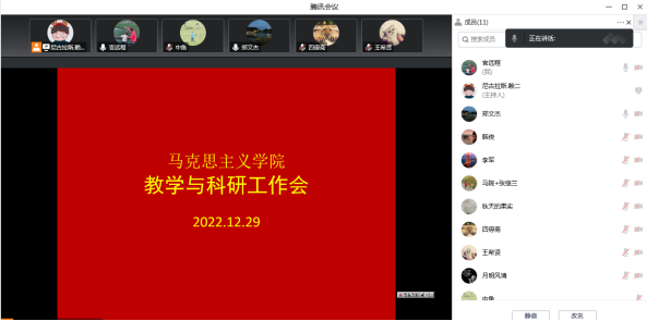 马克思主义学院在年终召开科研与教学工作会议,不仅是总结2022年的工作,更为重要的是提前对2023年的科研与教学工作进行规划,要老师们在认清形势下更要增强信心,力争在2023年的科研工作上能够取得更大的进步。