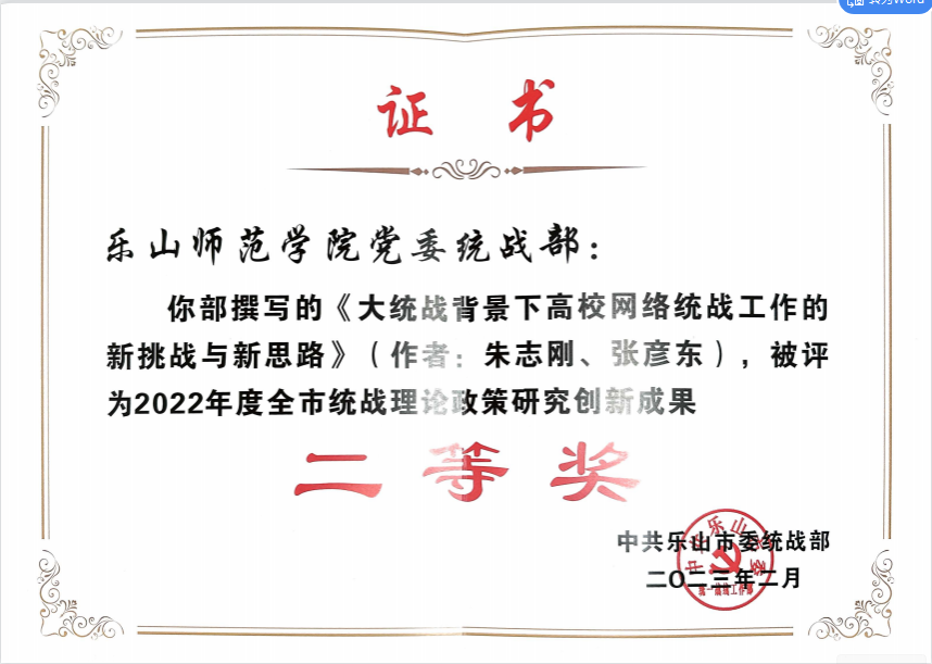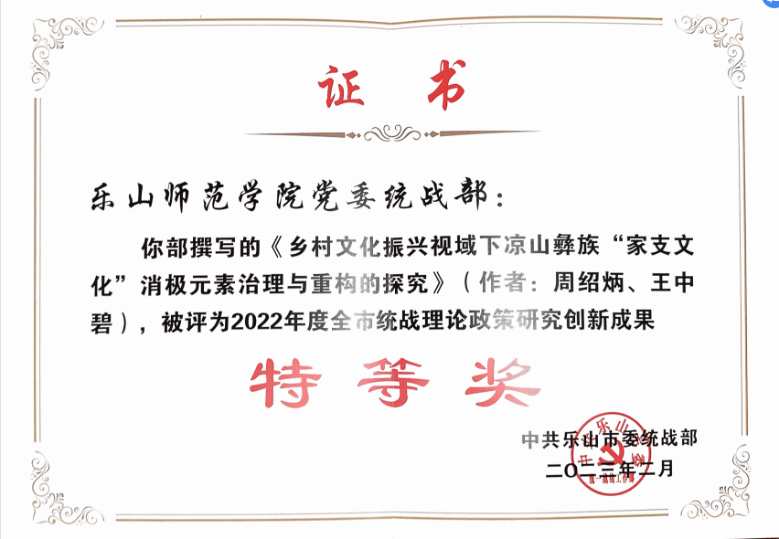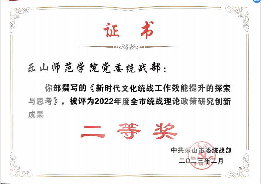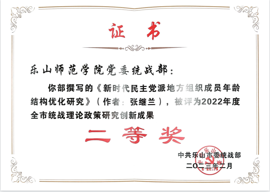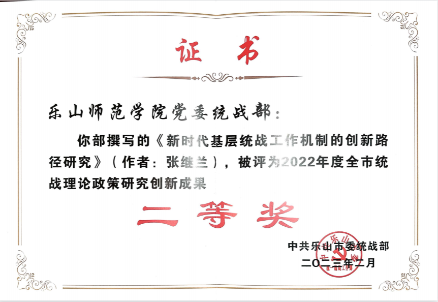 据悉,全市共评选出2022年度统战理论政策研究创新成果特等奖3篇、一等奖5篇、二等奖8篇、三等奖10篇。近年来,学校统一战线始终坚持以习近平新时代中国特色社会主义思想为指导,深入学习贯彻习近平总书记关于加强和改进统一战线工作的重要思想,践行“4321”工作法,着力破解统一战线工作围绕中心,服务大局的难点问题,精心组织理论政策研究,形成了一批优秀创新成果,连续获得省市表彰奖励。