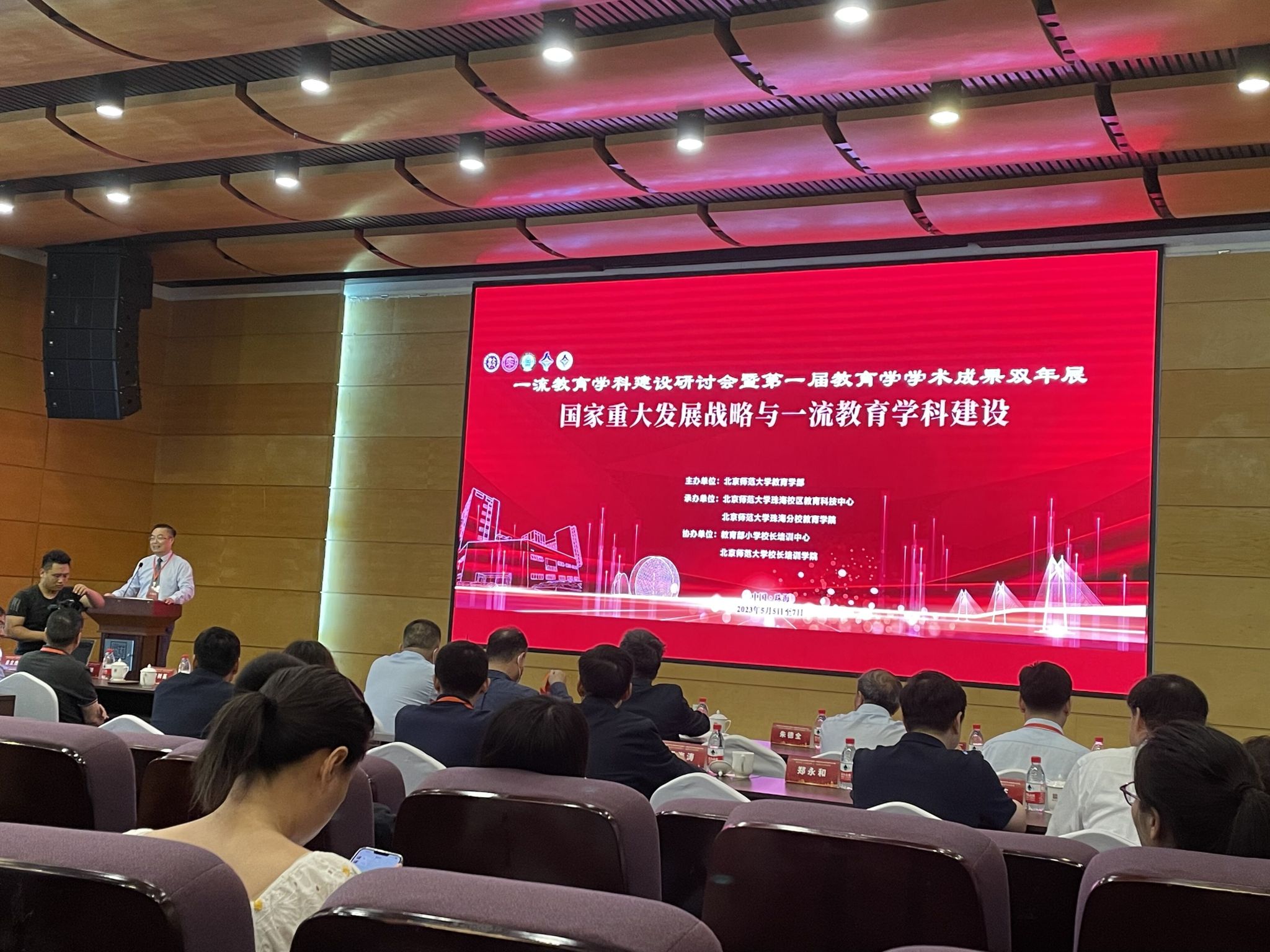 本网讯(文、图/张杨) 5月6-7日,由北京师范大学教育学部主办的一流教育学科建设研讨会在北京师范大学珠海校区励教楼隆重举行。研讨会围绕“一流教育”、“学科建设”、“高质量教育”三个关键词展开,会议共分两个主论坛,以及六个平行分论坛组成。开幕式由北京师范大学教育学部党委书记施克灿教授主持。我校特殊教育学院张梅院长、张杨博士受邀参会。