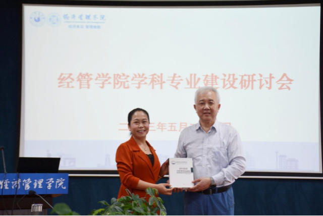 研讨会上,罗富民首先向大家介绍了经济管理学院的学科建设、学院发展历史,讲述当下学校准备申报硕士研究点、学院转变发展方向,打造特色专业等现实情况。邓健在经过调研后初步认为,为满足研究点的特色申报,并且基于学校所在位置,希望未来学院的发展与西部发展相结合,重视“双碳”研究,其次是抓住时代发展的机遇,重视数智化发展。谭力文教授在研讨会上发表了建议,他讲述了自己对于学科研究的理解以及自己的教学原则。他肯定了学科平台很大,有很强的交流沟通性。其次,在队伍建设方面,谭力文教授讲到,要始终抓好特色,注重干部配备问题,强调队伍建设的重要性。同时,他鼓励大家要多参与学术会议,因为学术会议是展现自我、结交学术好友的重要途径。在教学方面,他着重讲述了案例教学的重要性,且就案例教学的目标以及作用发表了自己的看法。