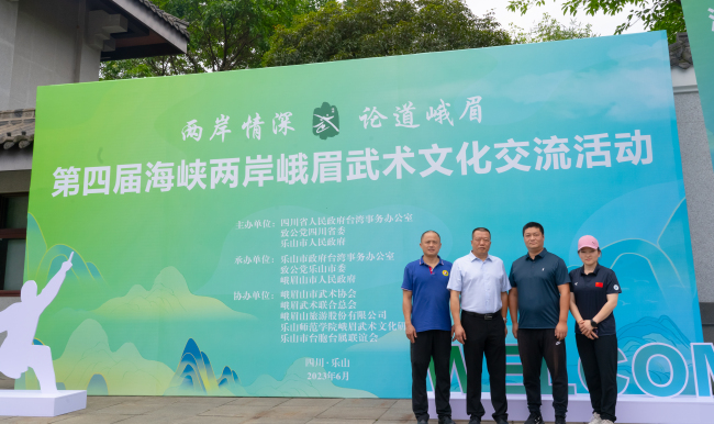 本网讯(文/图 杨文铭)6月20日,我校峨眉武术文化研究所王亚慧、辜伟、杨文铭、石曼曼受邀参加第四届海峡两岸峨眉武术文化交流活动。活动以“两岸情深,论道峨眉”为主题,由四川省人民政府台湾事务办公室、致公党四川省委、乐山市人民政府共同主办,乐山市政府台湾事务办公室、致公党乐山市委、峨眉山市人民政府承办,乐山师范学院峨眉武术文化研究所、峨眉山市武术协会等协办。