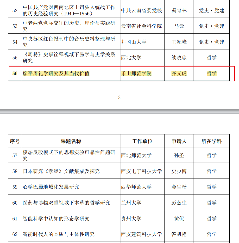 本网讯(文、图/周袁宏)9月19日,全国哲学社会科学办公室发布了《关于2023年国家社会科学基金西部项目立项名单的公示》。其中,马克思主义学院教师齐义虎博士所主持申报的“廖平周礼学研究及其当代价值”课题荣获2023年国家社科基金西部项目立项。
