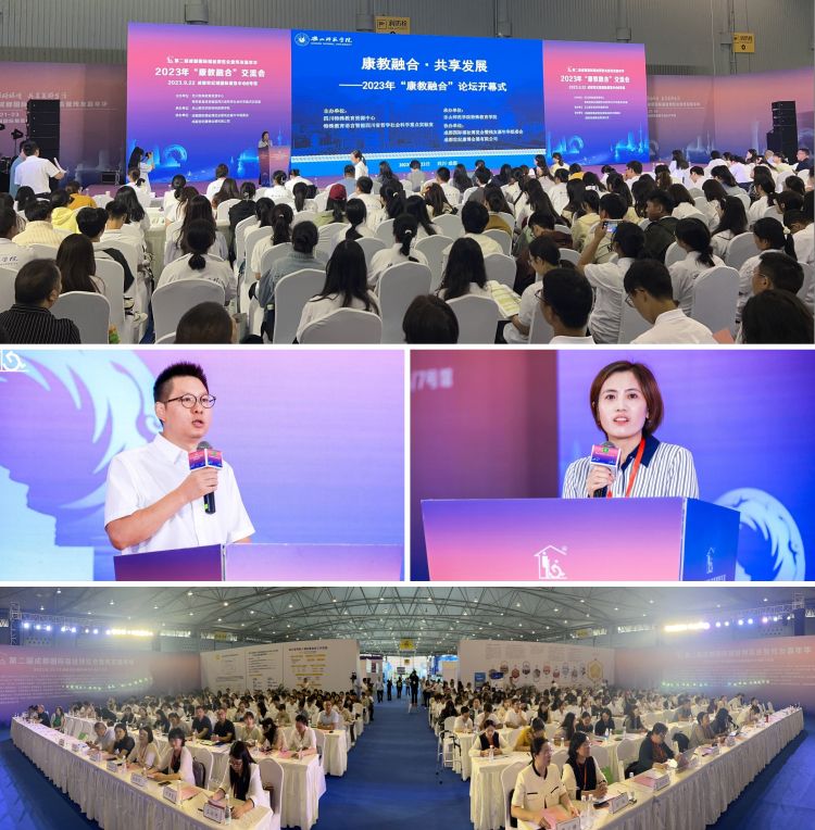 本网讯(文/李健萍 图/魏艺文) 9月22日上午,第二届成都国际福祉博览会“康教融合·共享发展”论坛在成都世纪城国际展览中心6号馆举行。论坛由特殊教育语言智能四川省哲学社会科学重点实验室、四川特殊教育资源中心主办,学校特殊教育学院承办。四川省残疾人联合会教育就业处副处长景义婷、全国7所开设教育康复学专业高校的专业负责人、全省各市(州)和县(市、区)特殊教育学校的领导和老师、各地康复机构负责人和工作人员等200余人参加了论坛。论坛开幕式和人才培养模式研讨交流会分别由特殊教育语言智能四川省哲学社会科学重点实验室专职副主任段玄锋、四川特殊教育资源中心副主任李秀主持。