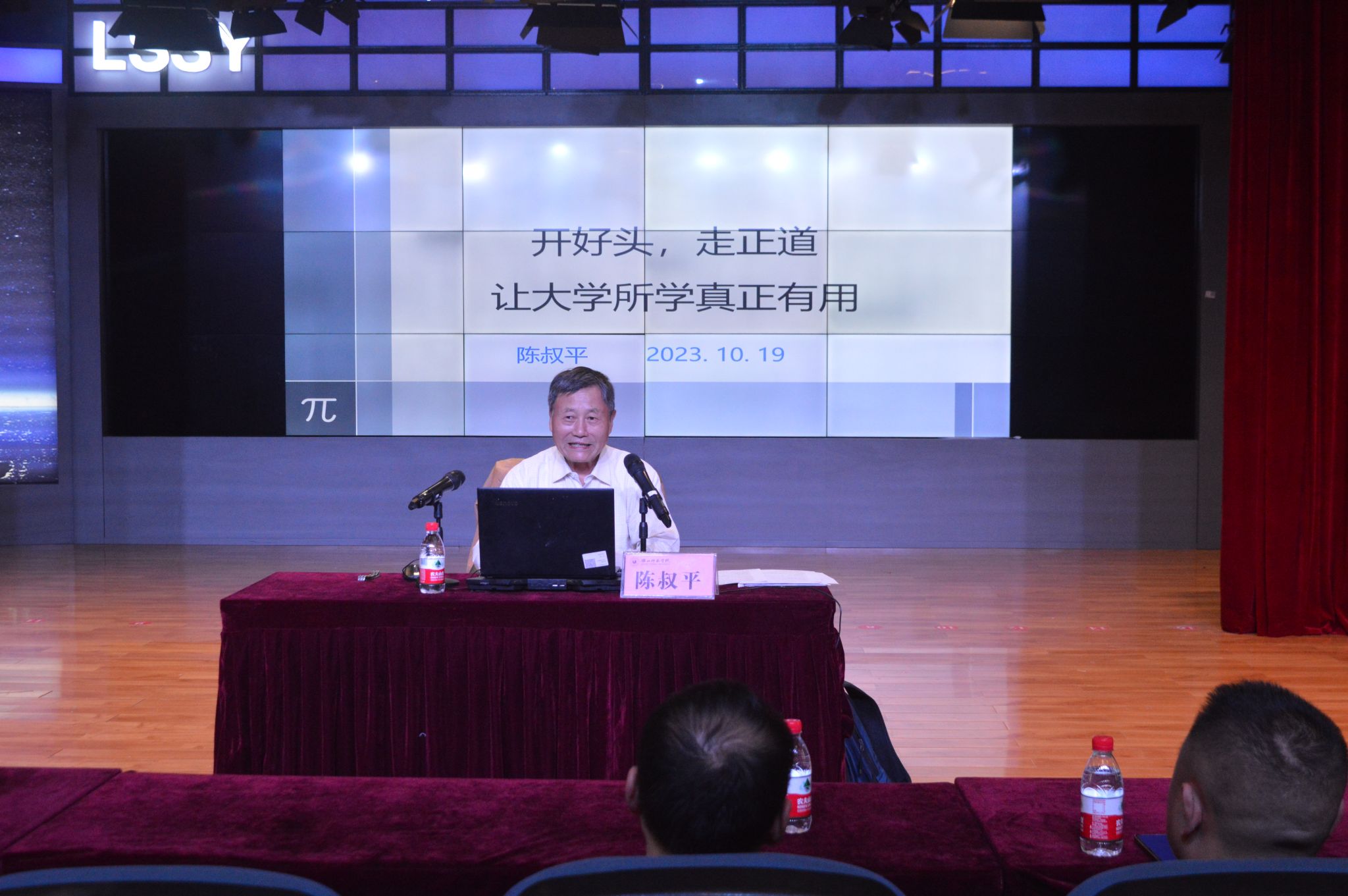 陈叔平教授通过开场白,引出了讲座主题“大道至简:主观要适应客观,做个明白人”“读大学与中学很不一样,今天和当年也很不一样”“什么是数学,为什么要学数学”,回答了如何让大学所学真正有用。陈叔平教授指出国家要强大,就要培养人才,其充要条件包括个人、环境、社会实战等方面,并通过其亲身经历和感受,表明学数学不能脱离实际,警醒大家应走正道。最后陈教授总结,数学是一套独特的语言体系和思维方式,学数学是一种理性的训练,提出了人人都需要尝试,人人都需要学好数学这一重要见解,引出“高分低能”这一辩论性的思考。
