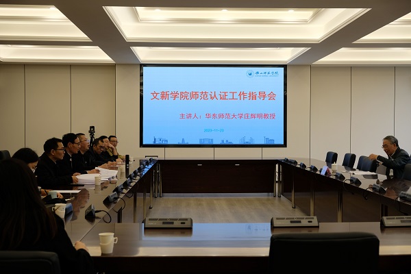 本网讯(文图/徐皓洁)为提升汉语言文学专业师范教育的质量,文新学院邀请了原华东师范大学副校长、博士生导师庄辉明教授,对汉语言文学专业师范认证改进工作进行现场指导和交流。指导会议于11月23日下午在文新学院顺利举行,会议由文新学院院长刘传启主持,汉语言文学专业的专任教师代表参加了此次会议。