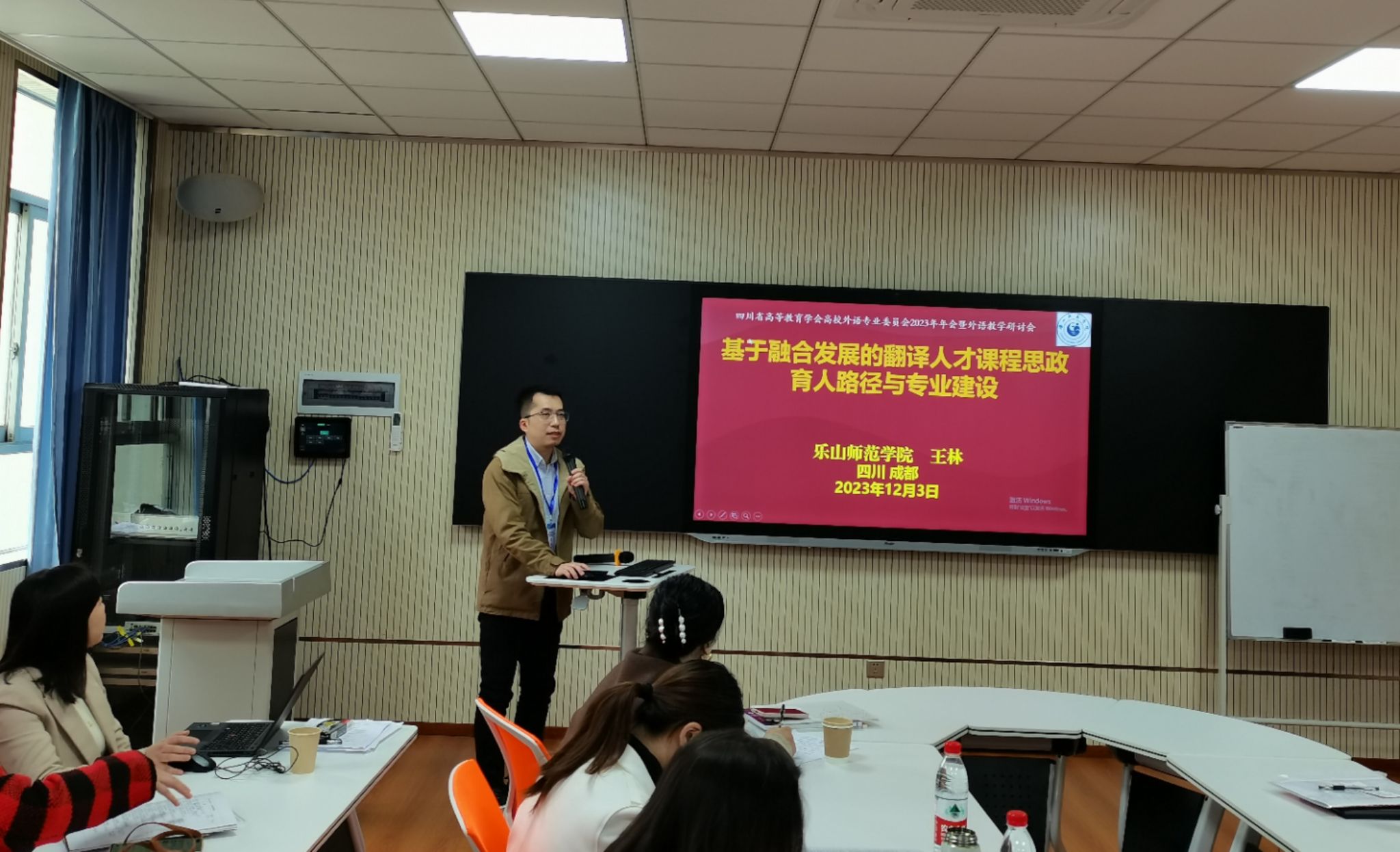 在分论坛环节,来自省内各高校的专家、教师代表围绕学科建设、专业建设、课程建设、大学外语教育教学研究、关键语种教育教学研究、高职院校外语教育教学研究分别进行了汇报分享和经验交流。我院江世勇教授主持第三分论坛,并作了总结发言;应用英语系主任王林以“基于融合发展的翻译人才课程思政育人路径与专业建设”为题,分享了我院翻译专业课程思政建设的经验。(审核 徐波)