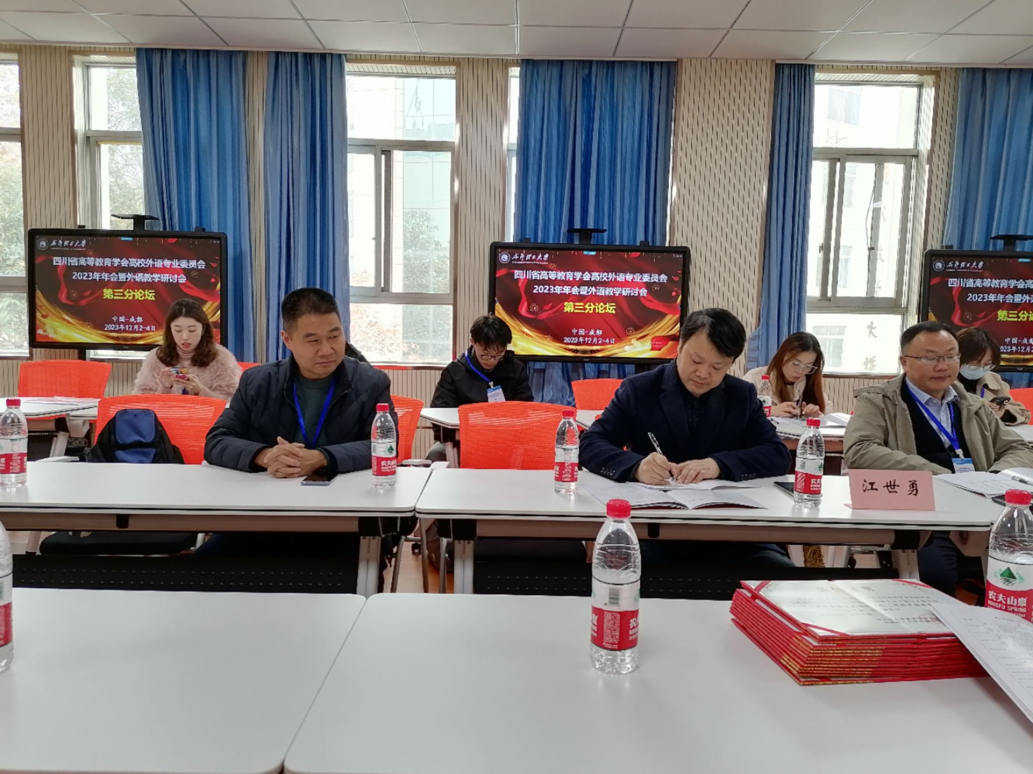 本网讯(图、文/王柯芦)2023年12月2-3日,四川省高等教育学会高校外语专业委员会2023年年会暨外语教学研讨会在成都举行,外国语学院院长江世勇、副院长徐波和陈开富、系主任王林和王柯芦参加了本次年会。