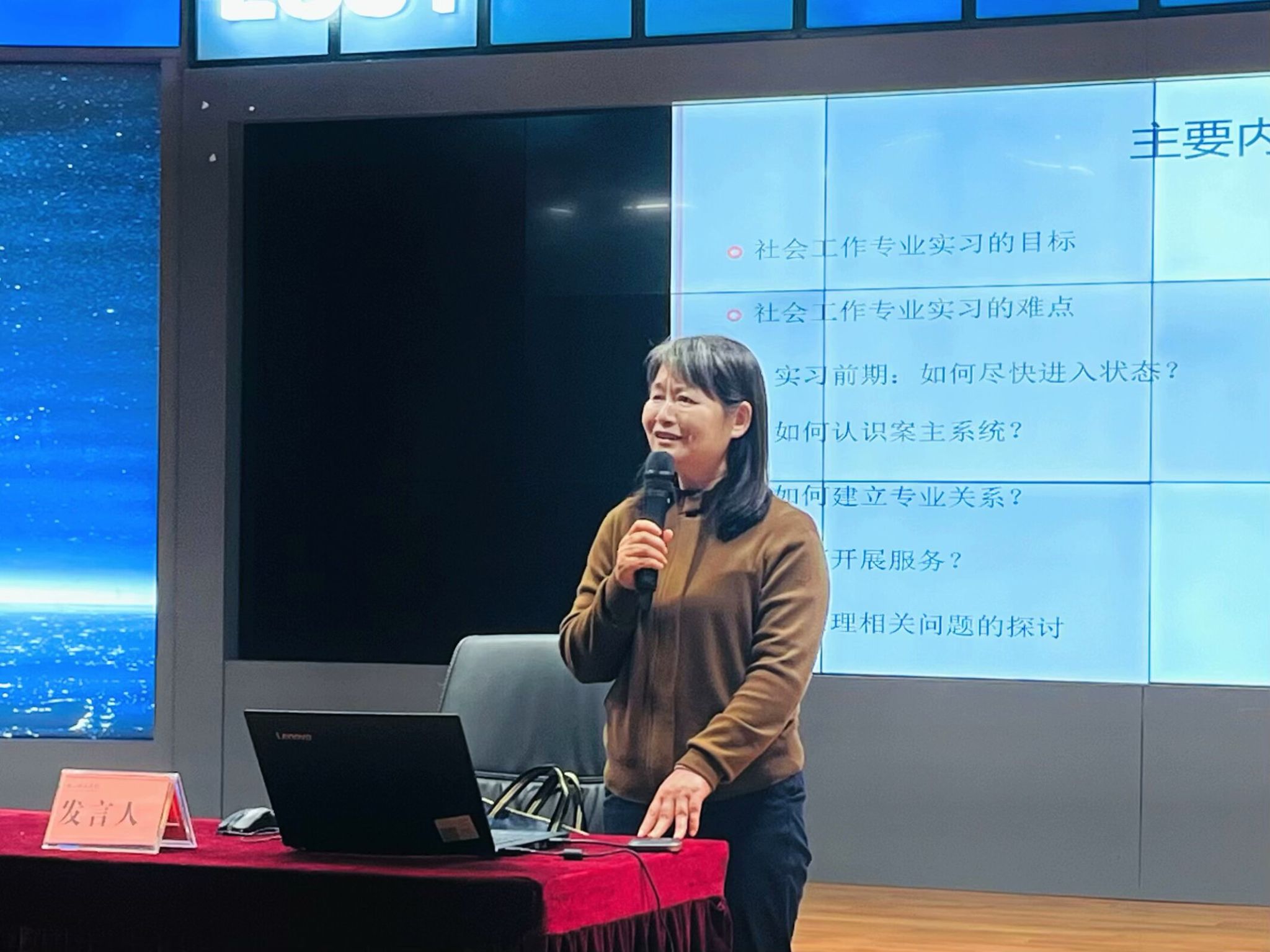 本网讯(文/郑雨欣 图/传媒分中心)为推进学院社会工作专业建设,解答社会工作专业实习的困惑。法学与公共管理学院于11月25日晚上7点30分在旷怡楼学术报告厅举办了“在实践中成长——社会工作专业实习中的难点和应对”主题讲座。由上海大学社工系陈彩霞副教授作为主讲人,法管学院副院长赵勇担任主持人。法管学院全体社会工作专业、养老服务管理专业同学参加了此次讲座。