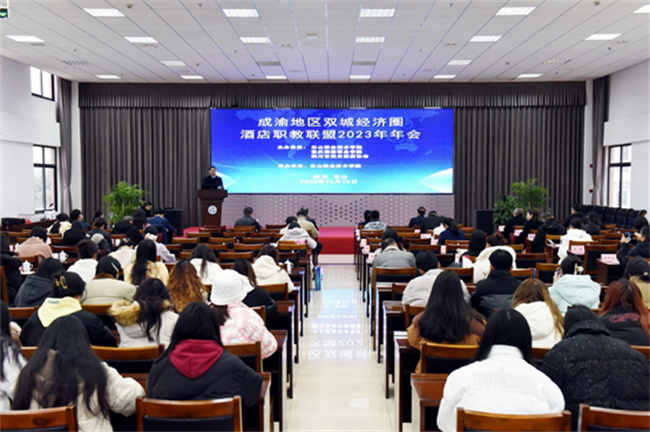 本网讯(文图/郭剑英)12月15日,成渝地区双城经济圈酒店职教联盟2023年年会在乐山职业技术学院召开。来自成渝地区相关院校、企事业单位、行业协会等30余家单位领导、专家、企业家代表及乐山职业技术学院旅游管理专业群师生代表等120余人参加会议。旅游与地理科学学院院长郭剑英参加了本次会议。