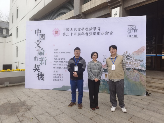 本网讯(文、图/苏航)3月中下旬,我院古代文学教研室徐立昕、任敬文、苏航三位博士参加了“中国文论的新契机——中国古代文学理论学会第二十四届年会暨学术研讨会”。本次会议由中国古代文学理论学会主办,武汉大学文学院承办,遵义师范学院、乐山师范学院、赣南师范大学协办。