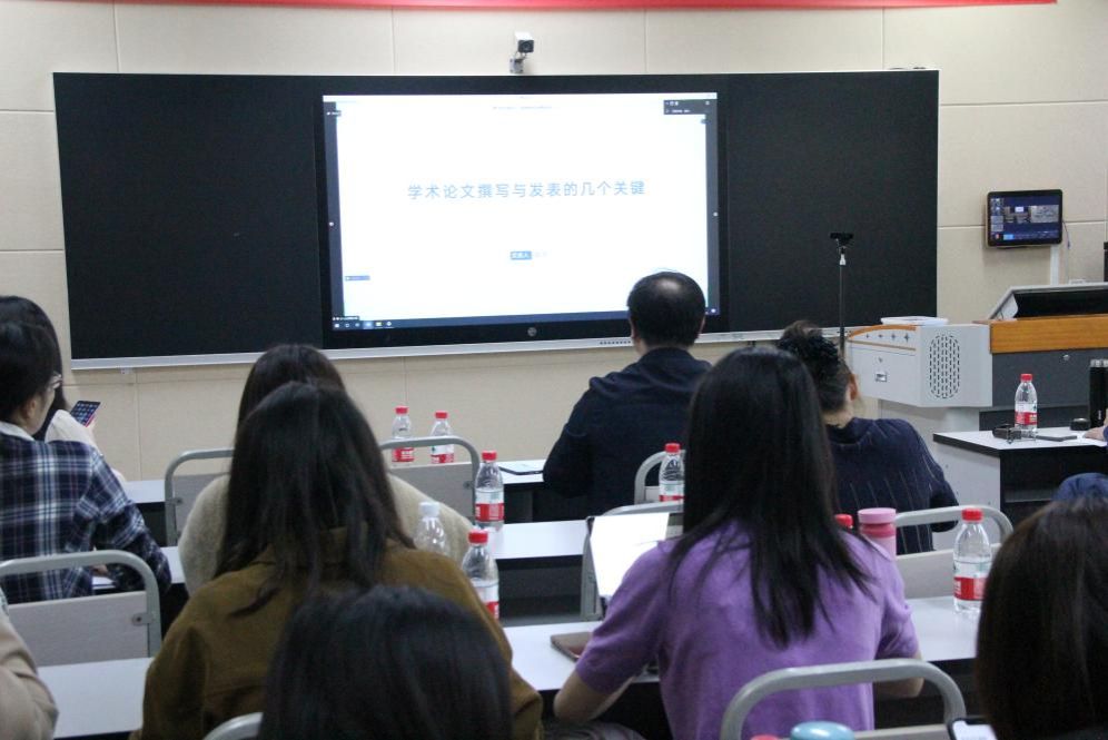 胡伶博士以“学术论文撰写与发表的几个关键”为题,结合自身的学术研究经历,给教师们分享了论文写作和发表过程中的几个关键问题。胡伶博士介绍了学术论文的类型,分析了高质量论文的特征和要点,讲解了学术论文选题、撰写、发表的关键方法,分享了相关的学术资源。最后,她建议老师们多阅读多思考、多学习多借鉴、多练习多写作,结合自身的教育教学经历,利用当地的资源优势,因地制宜地开展教学科学研究。