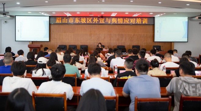 本网讯(文/蒋松 图/蔡燕)5月30日,我校沫若图书馆五楼学术报告厅座无虚席,迎来了一场题为“提升网络媒介素养,增强舆情应对能力”的精彩讲座。四川省委网信办原二级巡视员谢锦蓉担任主讲人,我校文学与新闻学院副院长杨晓军主持讲座,眉山市东坡区外宣与舆情应对培训班全体学员、文新学院新闻和网新专业部分老师、2022级和2023级新闻班同学共同聆听了讲座。