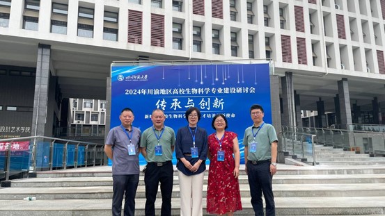 本网讯(文图/代发文) 6月14-15日,2024年川渝地区高校生物科学专业建设研讨会在成都成功举办。会议由四川师范大学、川渝地区高校生物科学专业发展联盟主办,聚集了来自西南大学、重庆师范大学、四川师范大学、西华师范大学等100余名领导和专家,我校生命科学学院院长刘芳带队参加了此次会议。