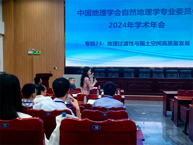 本网讯(图、文/朱冉)6月14日至17日,中国地理学会自然地理学专业委员会2024年学术年会在广东梅州举行。中国科学院院士、中国地理学会理事长陈发虎,中国科学院院士夏军,中山大学常务副校长杨清华,嘉应学院校长陈文海,梅州市人民政府副市长陈亮,嘉应学院副校长陈建存等领导嘉宾出席。来自全国各地的地理学专家、学者及从业者齐聚一堂,共同探讨自然地理学领域的研究进展和发展趋势。会议围绕“新时代自然地理学——交叉融合与和谐发展”这一主题,共设有27个分会场,涵盖了地理过渡性、生态环境、人地关系等多个领域。在会议的第23专题(地理过渡性与国土空间高质量发展),旅游与地理科学学院朱冉博士作了题为《四川县域农业高质量发展水平测度及其空间配置研究》的学术汇报。