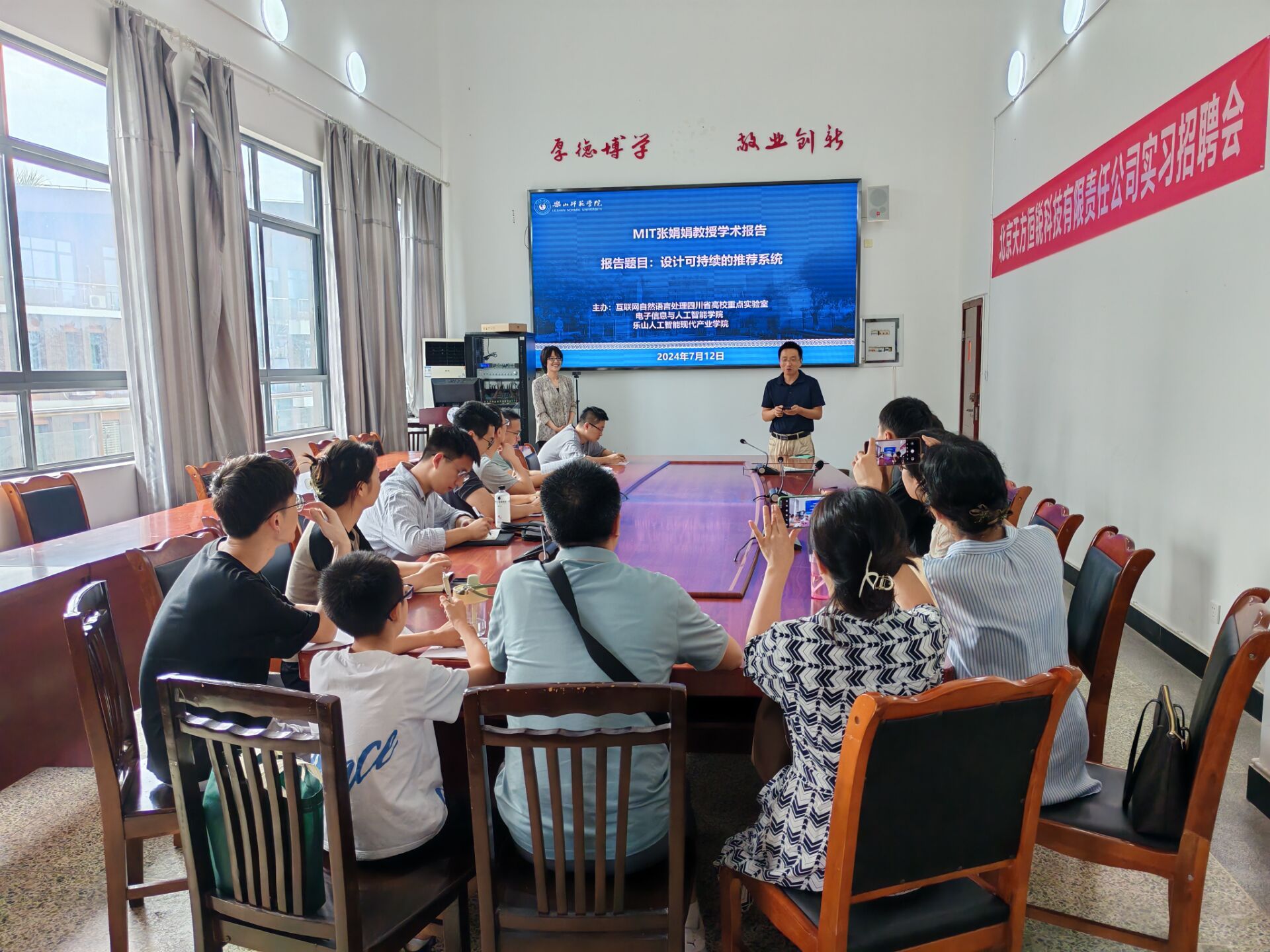 本网讯(文/黄陈英 图/静思远)2024年7月12日,应乐山师范学院电子科学与人工智能学院金澎院长邀请,麻省理工学院张娟娟教授来乐山师范学院开展学术讲座,讲座题目为《设计可持续的推荐系统》。本次讲座在特教C501举行,金澎院长主持了本次讲座。参加此次讲座的有静思远、李勤、杨骏、电子信息与人工智能学院的部分青年教师以及西南石油大学部分在读研究生等。