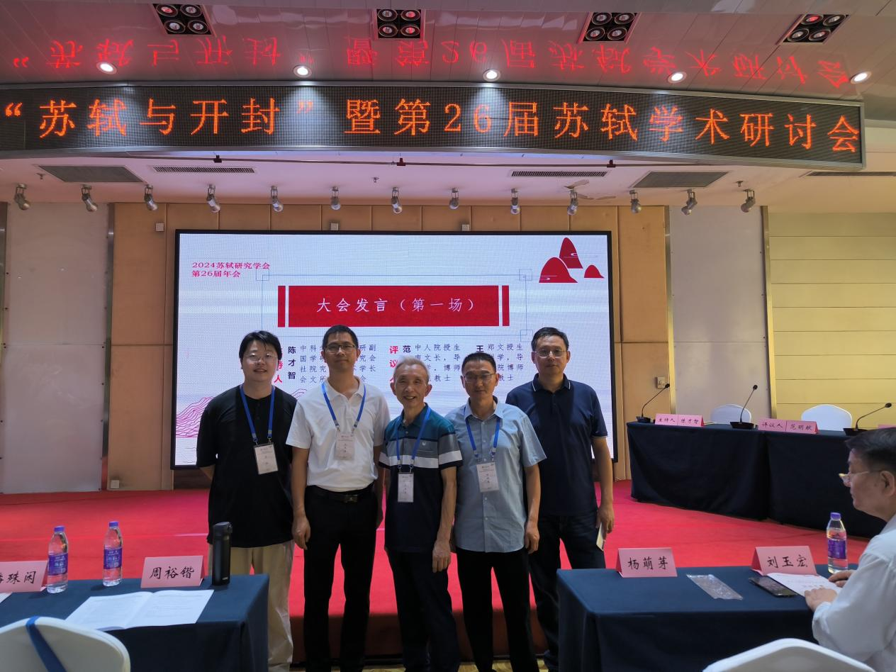 本网讯(文图/苏航)2024年8月3日至4日,由中国苏轼研究会、河南大学主办的第26届苏轼学术研讨会在河南大学成功举办。乐山师范学院原党委书记杨胜宽教授、三苏研究中心负责人何晓苇教授、学科建设与发展规划处副处长刘克稳副教授、《乐山师范学院学报》“三苏研究”栏目责任编辑王兴全副编审以及文新学院青年教师苏航博士共5人参加此次研讨。任敬文博士虽未参会,也提交了论文。