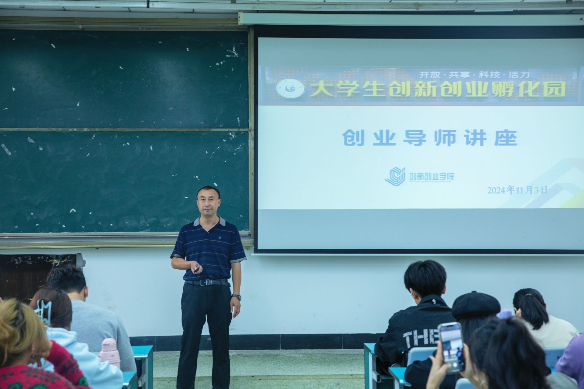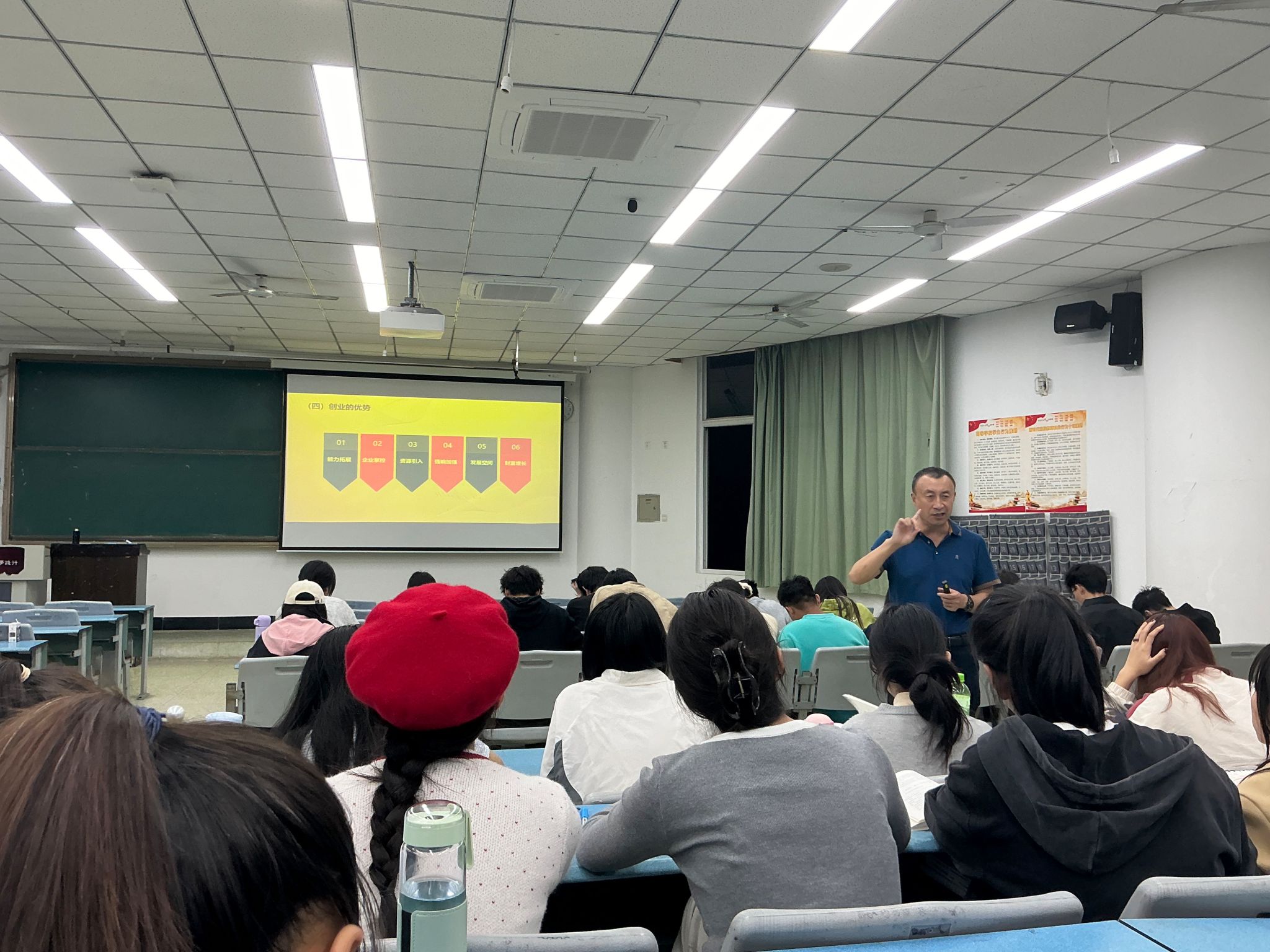 本网讯(文/李建 图/张利霞)创新创业学院11月3日在行知楼414举办了一场题为“创业项目风控及团队市场创建 ”的讲座。四川省人社厅创业导师、乐山师院客座教授陈建华老师为在场的教科学院和特殊教育学院270余名学生带来了一场精彩的思想盛宴。
