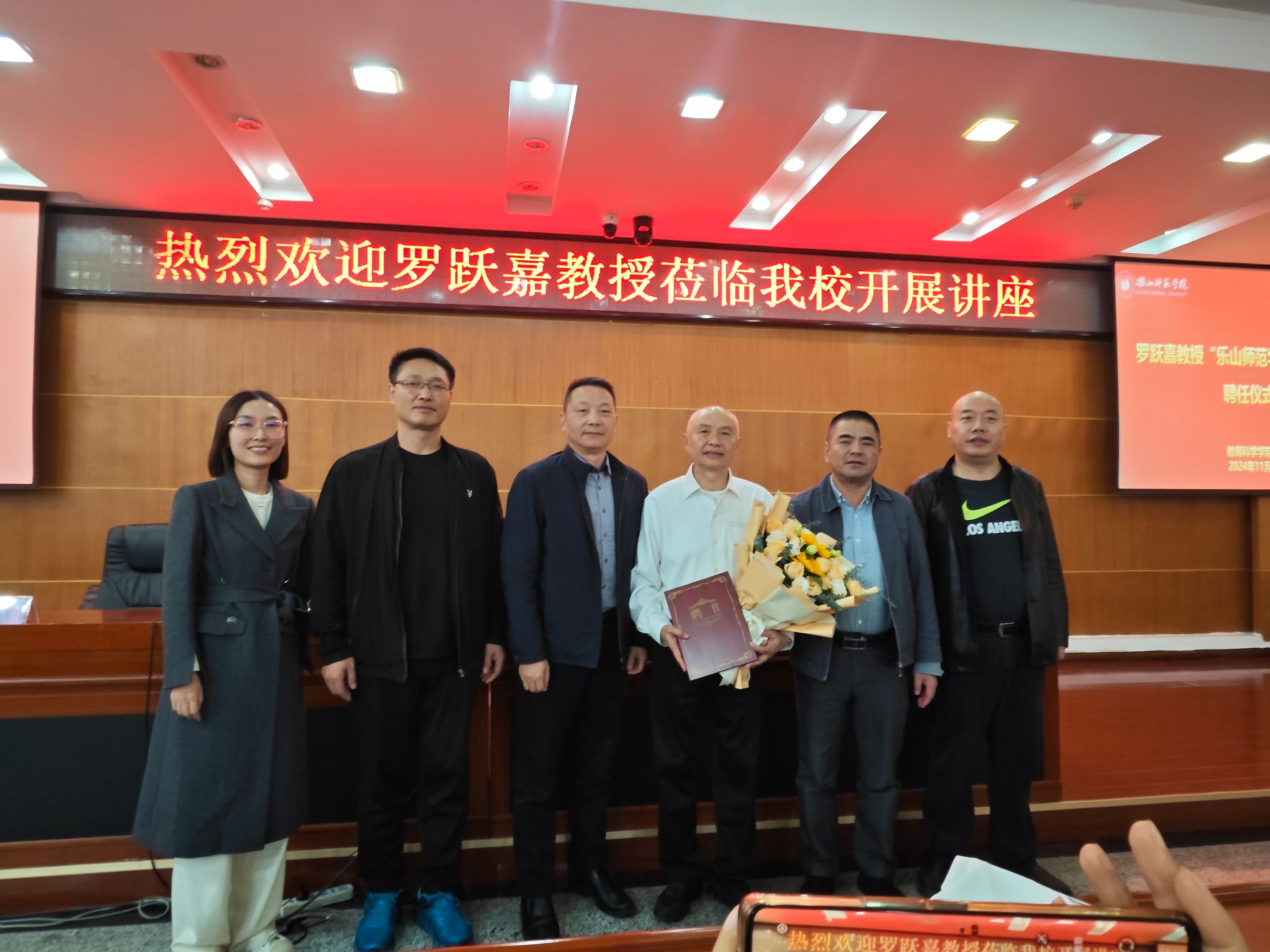 本网讯(图、文/程韬同)2024年11月5日,乐山师范学院“罗跃嘉客座教授聘任仪式”在校图书馆五楼会议室举行,聘任北京师范大学心理学部教授、康复大学教授、博士生导师罗跃嘉为乐山师范学院客座教授。乐山师范学院党委常委、组织部长兼教育科学学院院长佘万斌、教育科学学院党委书记罗立顺、党委副书记何晓军、副院长徐世鼎、马艺丹及部分师生代表出席仪式。仪式由马艺丹主持。
