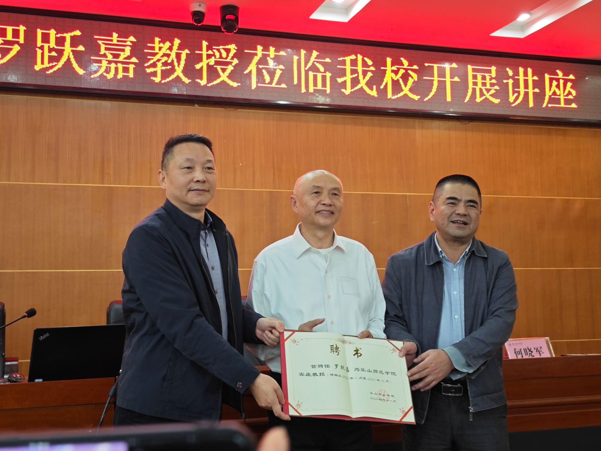 佘万斌在致辞中对罗跃嘉教授的加盟表示了热烈的欢迎,并衷心感谢罗教授对学校和学院建设发展的关心和支持。随后由佘万斌和罗立顺向罗跃嘉颁发聘书。罗跃嘉表示,此次受聘是一份荣誉更是一份责任,他将积极参与教育科学学院学科建设、科研指导等方面的工作,不遗余力地为学校和学院的发展贡献力量。