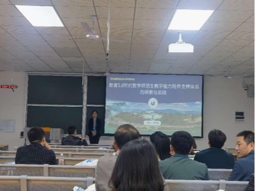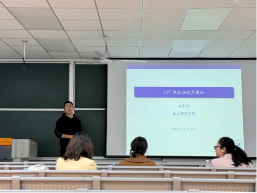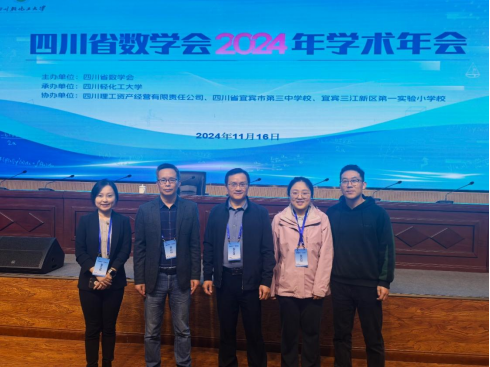 本网讯(文、图/陈芷禾)四川省数学会2024年学术年会于2024年11月15日-17日在四川轻化工大学宜宾校区召开。大会由四川省数学会主办,由四川轻化工大学承办,协办单位包括四川省宜宾市第三中学校、宜宾三江新区第一实验小学校。大会邀请了中国科学院院士李安民教授等知名专家以及来自省内各大高校、中小学校的300多名学者参会,数理学院教师屈小兵、高仕龙、罗天琦、陈芷禾、姚中伟受邀参加了此次会议。在会议开幕式上,四川轻化工大学党委常委、副校长罗惠波首先致欢迎词,然后四川省数学会理事长彭联刚教授作了学会工作报告。开幕式后安排了五场大会报告,以及100余场分组学术报告和分组教学报告。罗天琦教授和姚中伟博士分别做了题为“国家教育数字化战略下数学师范生教学能力培养支持体系的探索与实践”与“Normal critical surfaces in CP2”的分组报告。