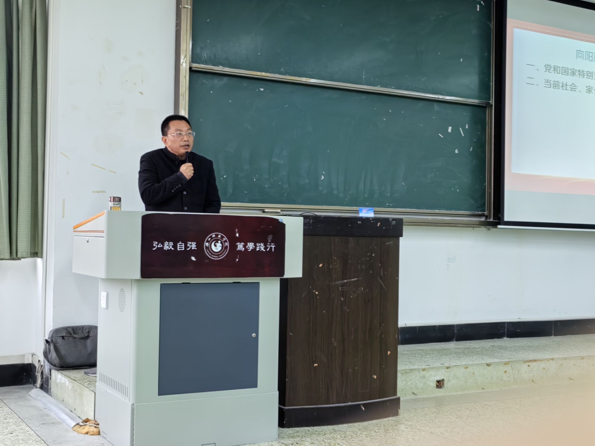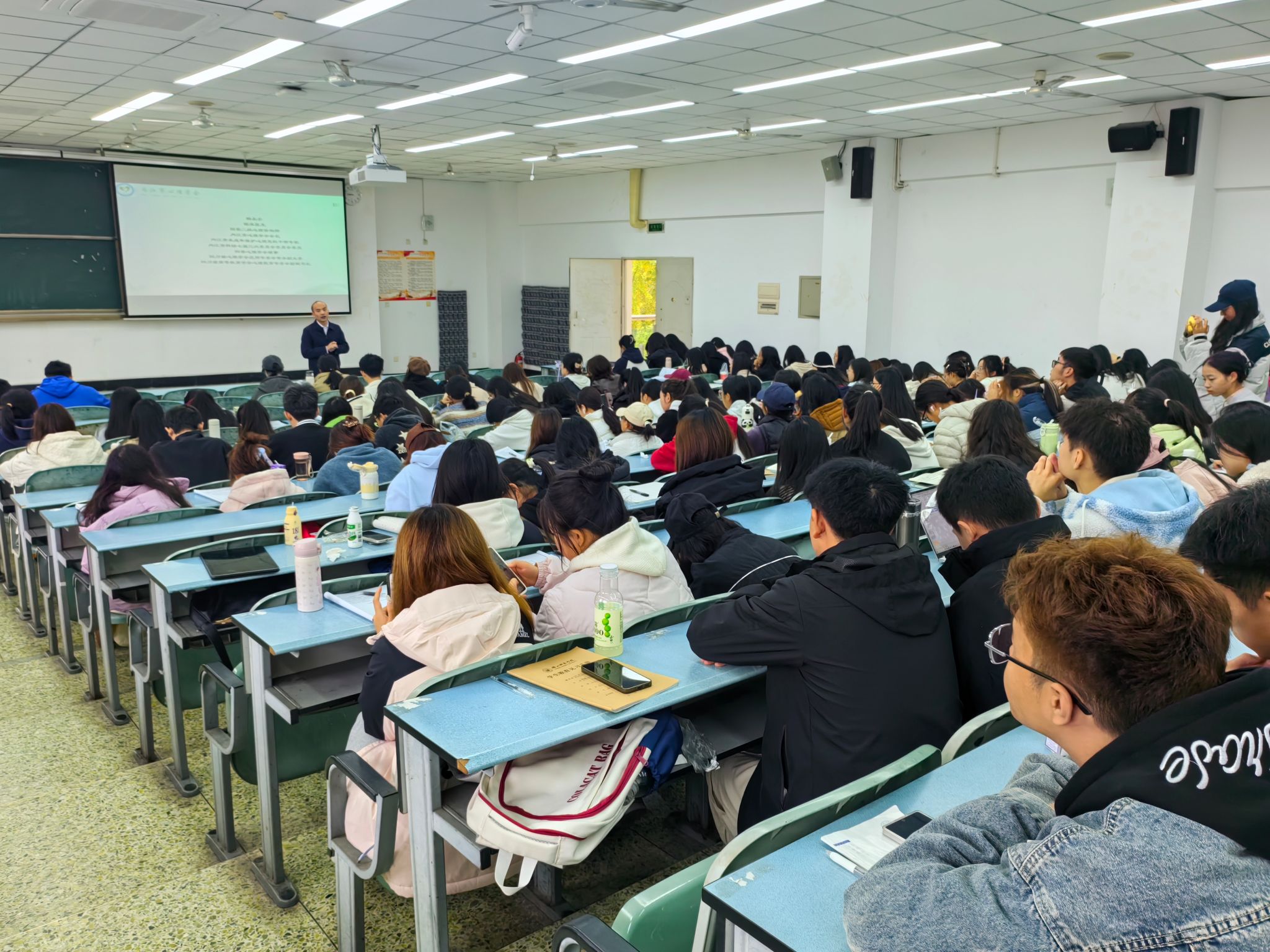 第二场讲座由杨永全主讲,以“心视角新起点引领新未来”为题,教在座学生如何利用心理学常识助力教书育人。他以多年的临床工作经验为出发点,从心理健康新解、教师对心理学知识的运用、师生的自我认知、情绪和性格的认知和把控等方面与同这们做好交流,尤其是教会同学们如何判断自己的授课对象具有抑郁倾向或其他心理疾病。杨老师的课生动活泼,互动性强,充分调动了学生的积极性。