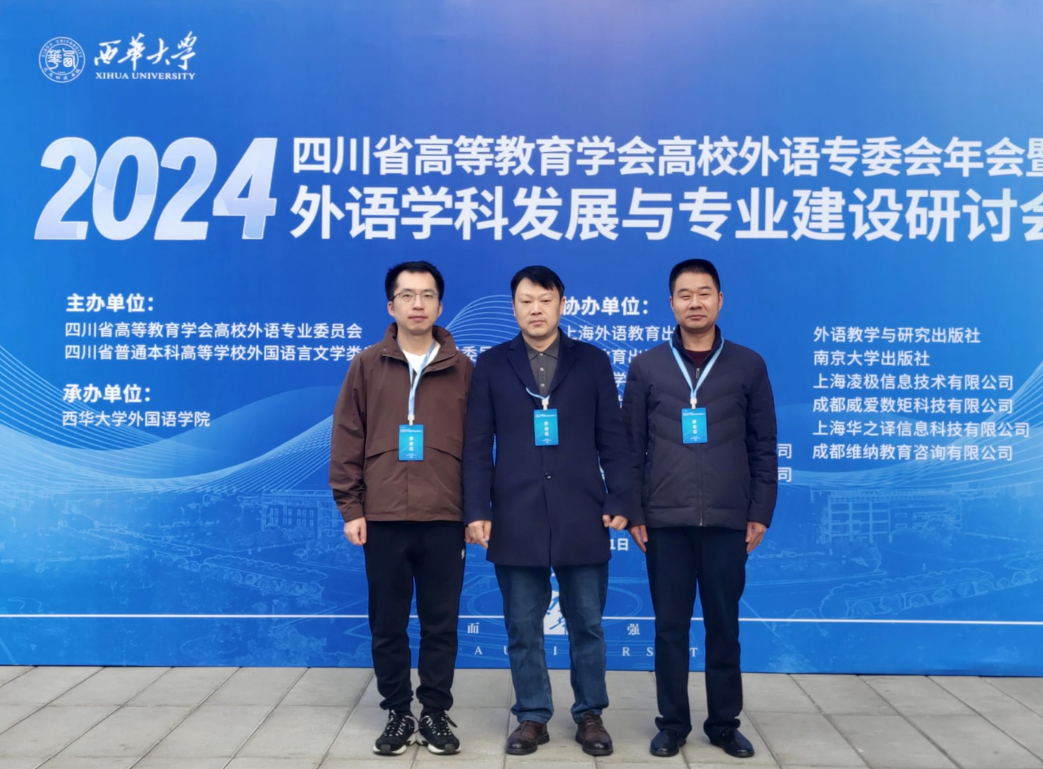 本网讯(文图/徐波)11月30日至12月1日,四川省高等教育学会高校外语专委会年会暨外语学科发展与专业建设论坛在西华大学举行。本次论坛由四川省高等教育学会高校外语专业委员会和四川省普通本科高等学校外国语言文学类专业教学指导委员会主办,西华大学外国语学院承办,吸引了来自全省各地的200多名外语教育专家、学者和教师代表参与。乐山师范学院外国语学院院长江世勇、副院长徐波,应用英语系主任王林参会。