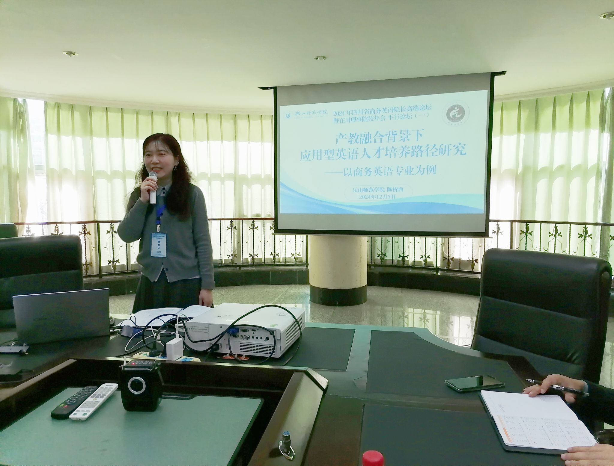 平行论坛中,陈析西以“产教融合背景下应用型英语人才培养路径研究——以乐山师范学院商务英语专业为例”为题发言,介绍了我校商务英语专业近年来融合发展的思路和办学实践。会议期间,外国语学院一行还与省内外兄弟院校就外语类专业人才培养与学科建设进行了交流。
