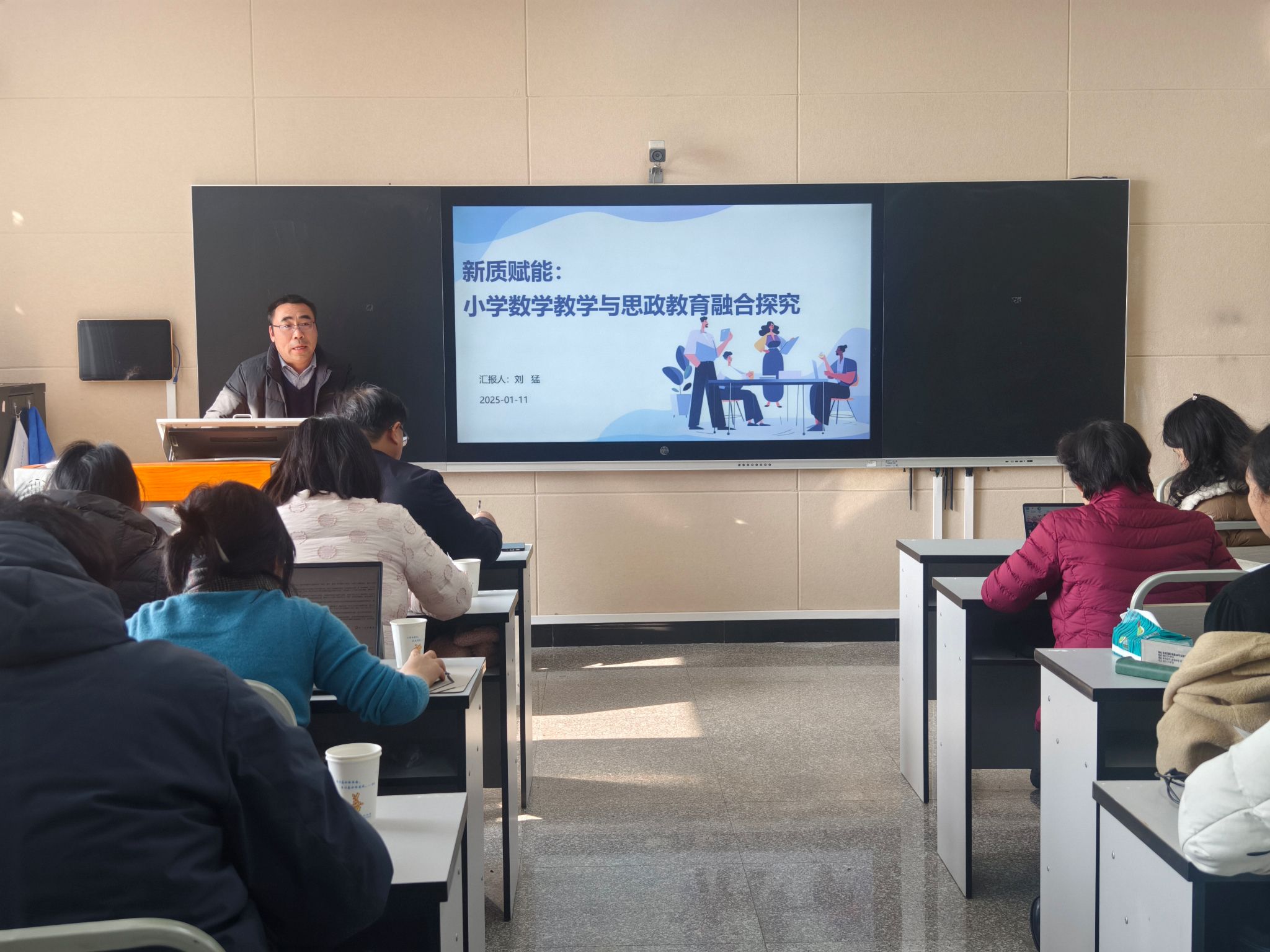 刘猛老师作了“新质赋能:小学数学教学与思政教育融合探究”的主题分享。他聚焦新课标中的“三会”,详细阐述了小学数学课堂融入思政元素的方法与技巧。在数学教学中进行学科德育,通过游戏化教学、数学故事讲解、互动式课堂等方式激发学生兴趣,以数学实验、生活应用、实践体验增强活动体验,以营造创新氛围、开设创新课程、举办创新活动促进创新思维发展。他认为,未来的小学数学教学应运用现代教育技术,加强思想政治教育、拓展国际化视野。