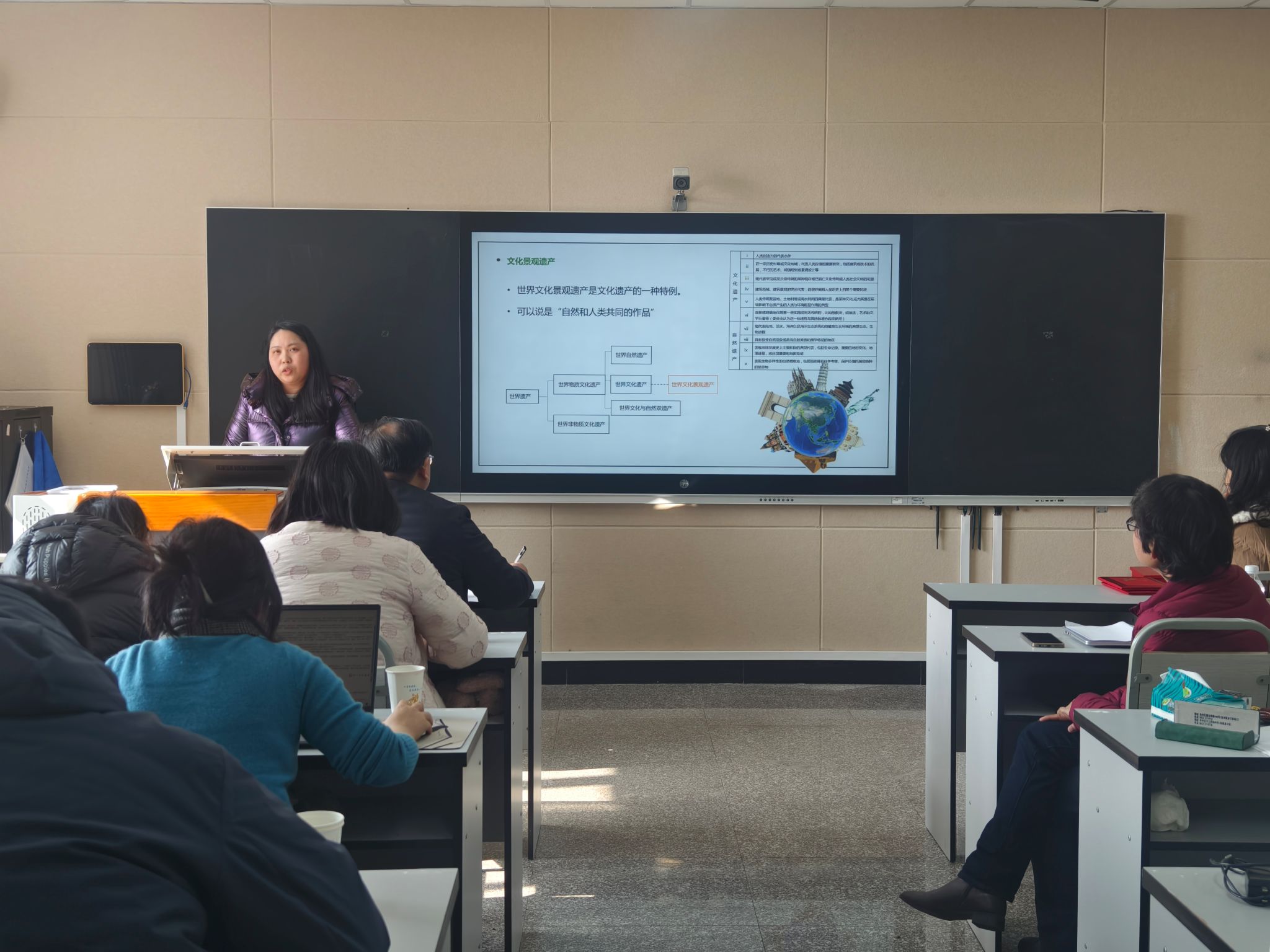 丁银平老师作了“基于世界文化景观遗产价值的乡土地理教材开发”的主题分享。她以自己的亲身经历、实地的科研考察和乡土地理的视角,深入云南元阳哈尼梯田,运用野外调查法、朗科罗色彩调查法等研究方法,融入手绘、软件绘图等技术进行创作,由科学出版社出版了科普著作《世界遗产哈尼梯田—雕刻在群山上的和谐家园》,受到广泛好评。