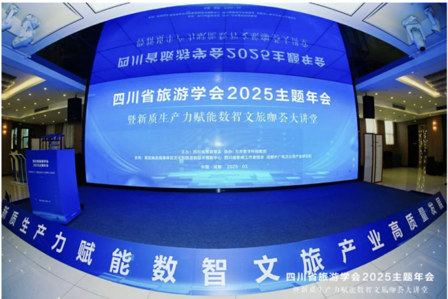本网讯(文图/孙永兴)3月21日下午,由四川省旅游学会主办、力方数字科技集团协办的“四川省旅游学会2025主题年会暨新质生产力赋能数智文旅咖荟大讲堂”在成都举行。旅游与地理科学学院党委副书记、院长、四川旅游发展研究中心主任郭剑英,副院长孙永兴参加了会议。