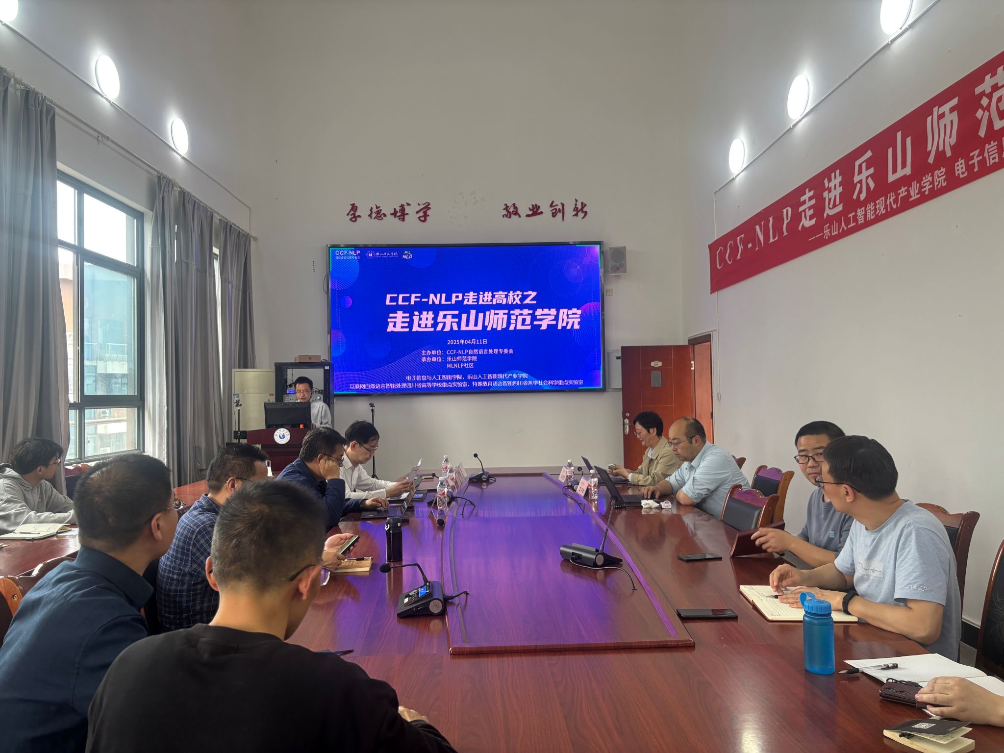 本网讯(文/黄陈英 图/许玲蛟)2025年4月11日下午,由电子信息与人工智能学院、互联网自然语言智能处理四川省高等学校重点实验室、川西南空间效应探测与应用实验室、乐山人工智能现代产业学院等多个单位联合主办的“CCF进校园”系列学术讲座在我校特教C501教室隆重举行。本次讲座邀请到了张岳、徐睿峰、钱铁云、王中卿等四位在人工智能领域极具影响力的专家学者,为电子信息与人工智能学院的师生们带来了一场知识的盛宴,吸引了众多师生积极参与。电子信息与人工智能学院金澎院长主持会议。本次会议在腾讯会议上同步进行,现场有60多人参加会议,线上有3500多人参加了此次会议。