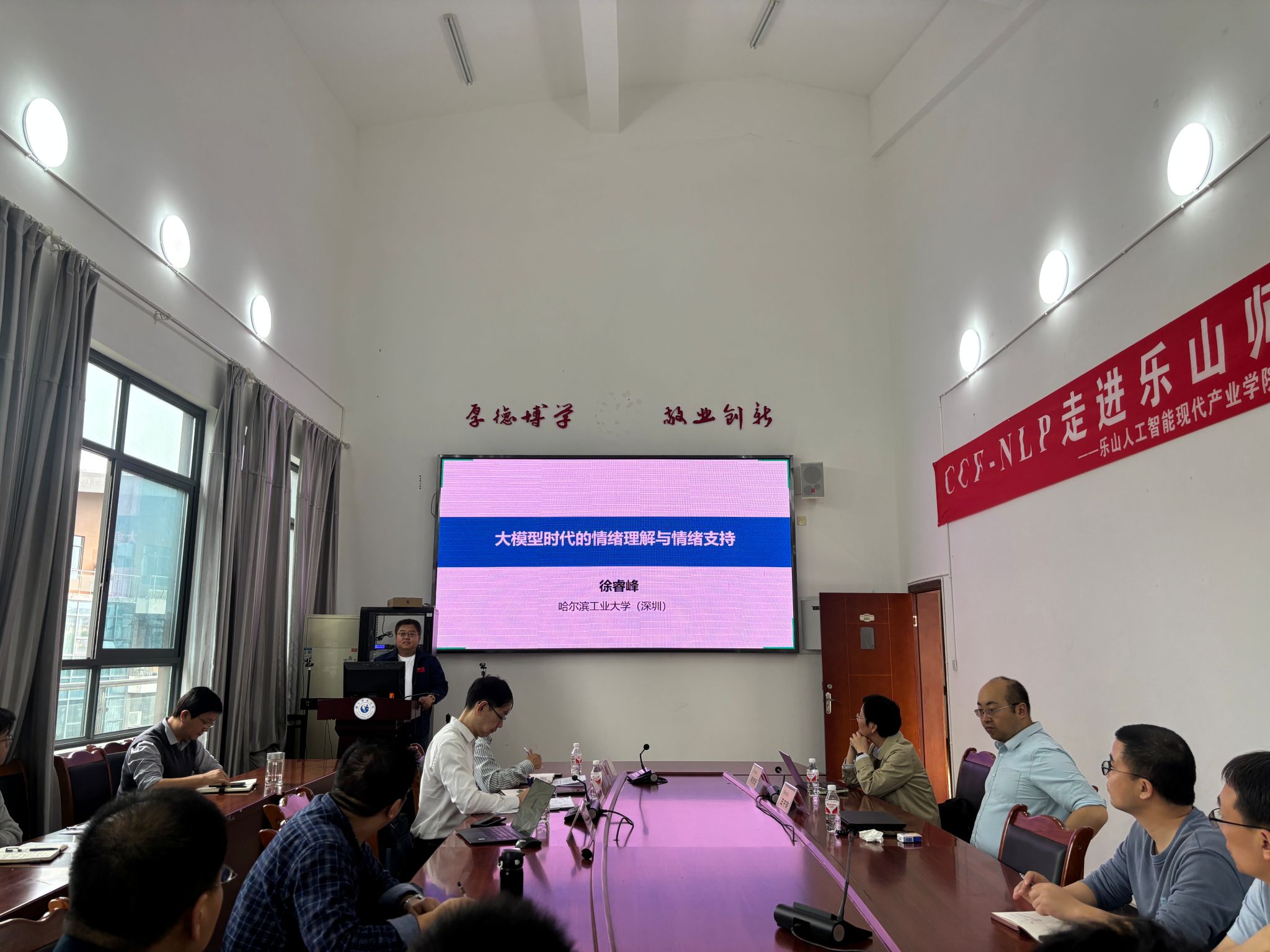 紧接着,哈尔滨工业大学(深圳)智能学部副主任徐睿峰教授带来了“大模型时代的情绪理解与情绪支持”的精彩报告。徐教授身兼数职,在多个学术组织中担任重要领导角色,在自然语言处理、情感计算等研究方向成果斐然。他在讲座中深入剖析了大模型时代下情绪识别、对话情绪识别等领域的最新进展与研究心得,让师生们深刻认识到情绪理解与支持在人工智能研究及实际应用中的关键意义。