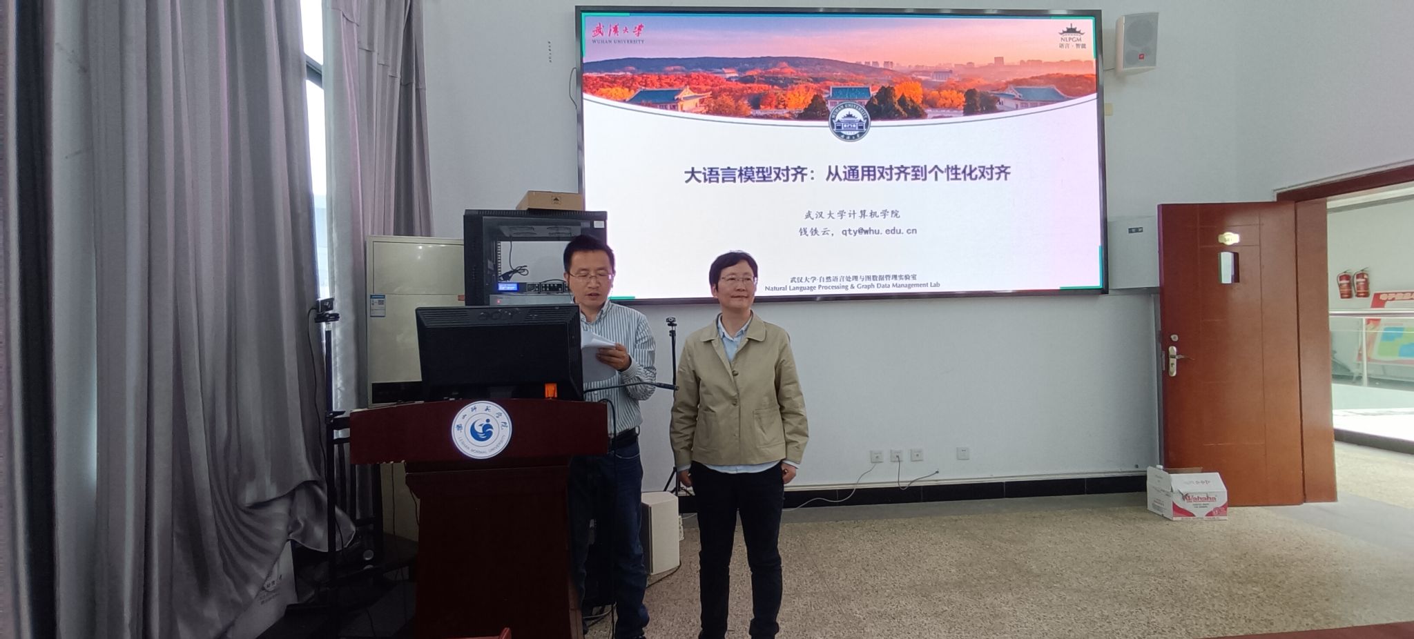 随后,武汉大学计算机学院教授钱铁云以“大语言模型对齐:从通用对齐到个性化对齐”为题展开讲座。钱教授作为相关领域的资深学者,在自然语言处理等领域主持多项重要课题,论文发表及会议任职经历丰富。此次讲座中,他围绕大语言模型通用对齐和个性化对齐的发展趋势与技术演进进行探讨,特别是对极具挑战性的可扩展监督及多模态场景下的个性化对齐技术进行了深入分析,为师生们在大语言模型研究方向上提供了新的思路。