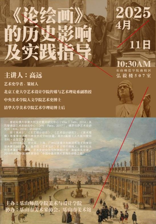 高远博士是北京工业大学艺术设计学院副教授,中央美术学院艺术史博士、清华大学美术学院艺术学理论博士后,曾赴哈佛大学意大利文艺复兴研究中心、巴黎德国艺术史研究中心、佛罗伦萨艺术史研究所访问研究,在《美术》《文艺理论研究》等重要学术期刊发表论文60余篇,在国内外主持策划学术展览50余场次,出版译著《论绘画:阿尔伯蒂绘画三书》《无墙的学院》等。