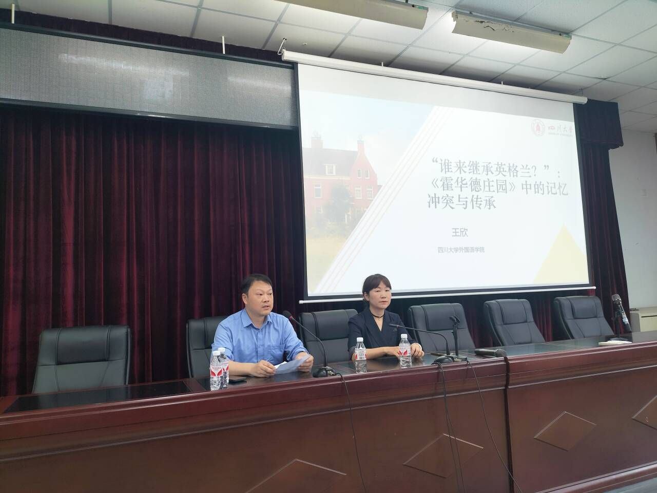 本网讯(文图/景爱民)5月8日下午,外国语学院在弘毅楼412教室举办了学术讲座“谁来继承英格兰?:《霍华德庄园》中的记忆冲突与传承”。本场讲座由外国语学院院长江世勇主持,四川大学外国语学院院长、博士生导师王欣教授受邀主讲,外国语学院副院长陈开富、部分专任教师及英语专业2023级全体学生参加了本场讲座。