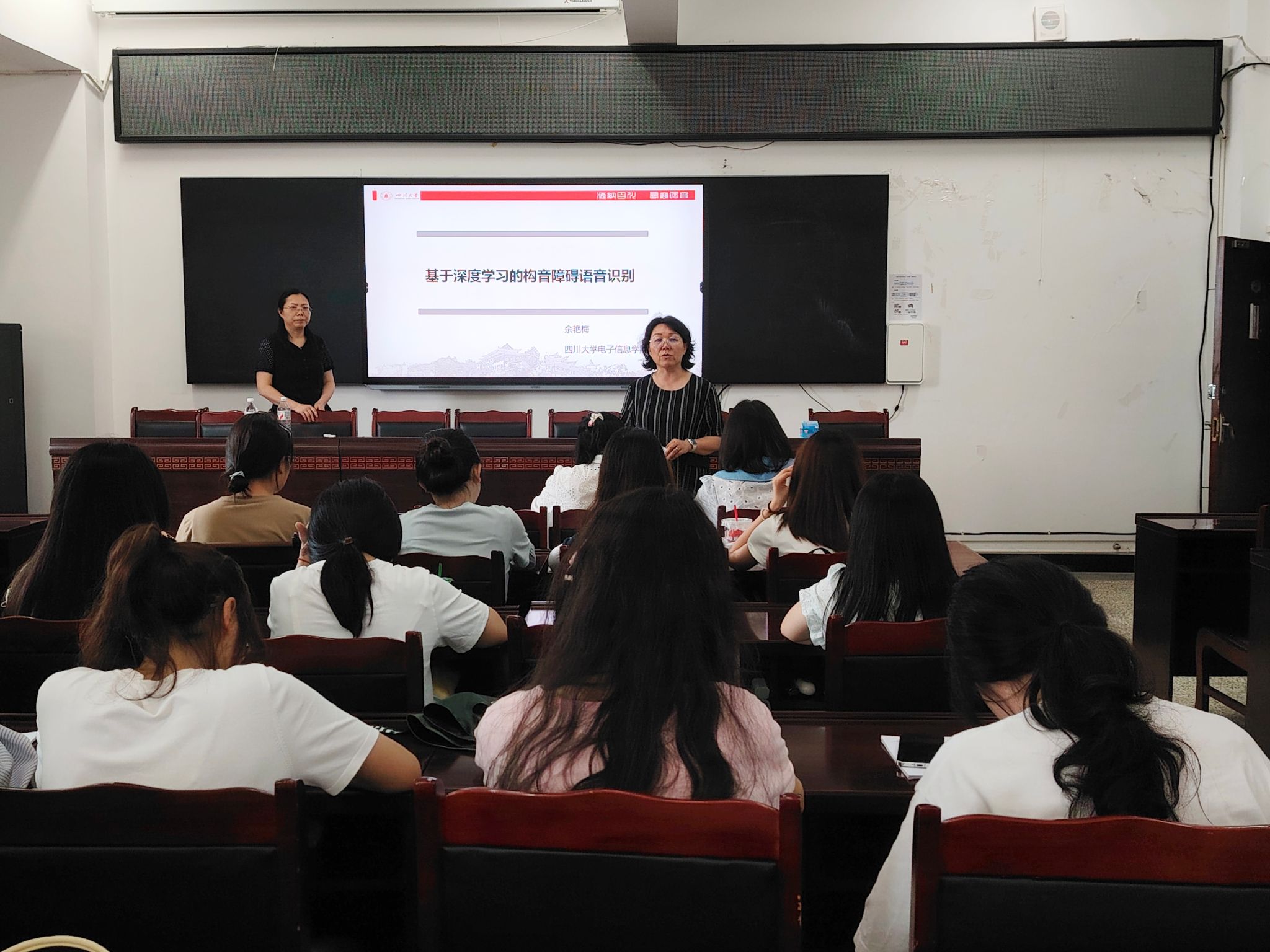 讲座伊始,余艳梅博士对基于深度学习的构音障碍语音识别项目进行了全面介绍。她指出,构音障碍自动语音识别技术对于提高构音障碍人士的沟通能力、辅助诊断以及开发辅助工具等至关重要,而深度学习作为当下人工智能领域的核心技术,为解决这一难题提供了新的思路和方法。余博士深入浅出地讲解了该技术的基本原理,结合实际案例,让师生们对原本抽象的概念有了更直观的理解。