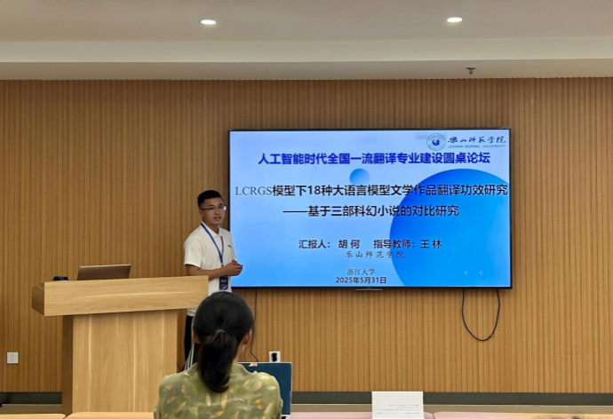 本网讯(文图/胡何)5月31日,第三届人工智能时代全国一流翻译专业建设圆桌论坛在浙江大学召开。外国语学院翻译专业2021级本科生胡何在王林副教授指导下的论文“LCRGS模型下18种大语言模型文学作品翻译功效研究”通过会议评审,受邀参会发言并获评优秀论文。