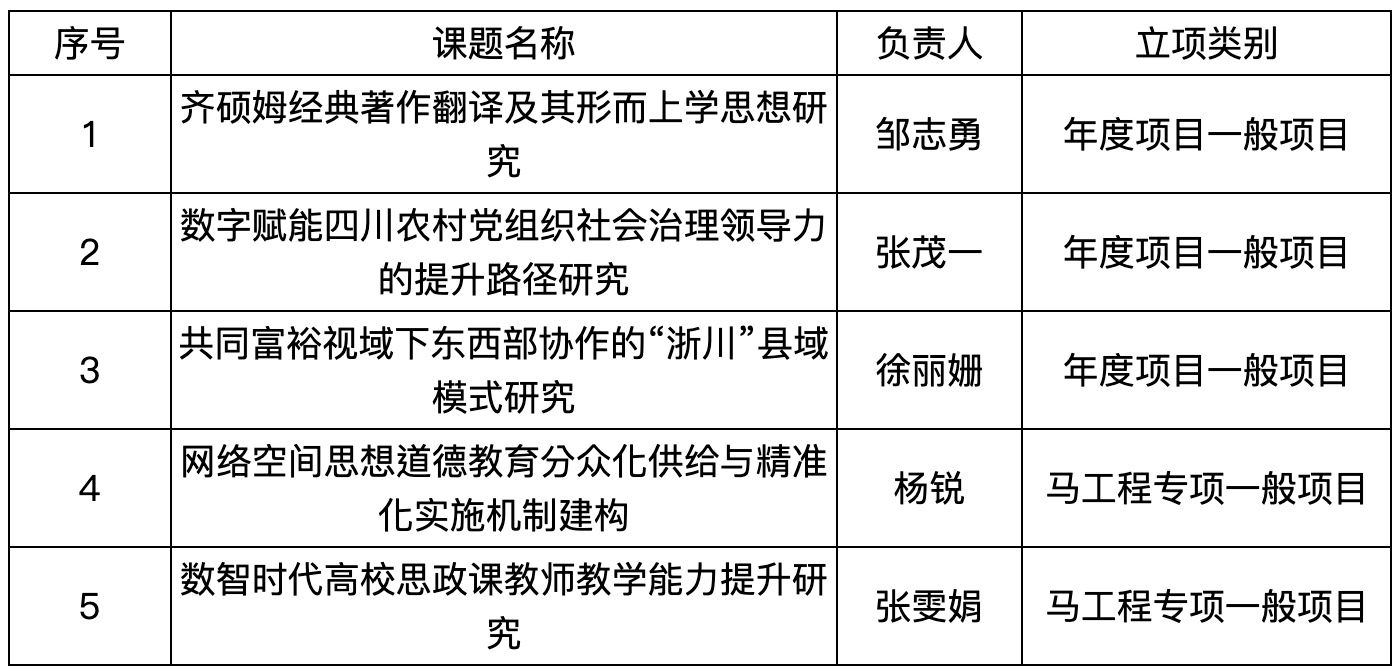 本网讯(文图/赖伟)2025年7月,四川省社会科学界联合会公布了2025年四川省哲学社会科学基金年度项目和马克思主义理论研究和建设工程专项立项名单,目前立项公示已结束。乐山师范学院马克思主义学院获得立项5项(年度项目3项、马工程专项2项)!