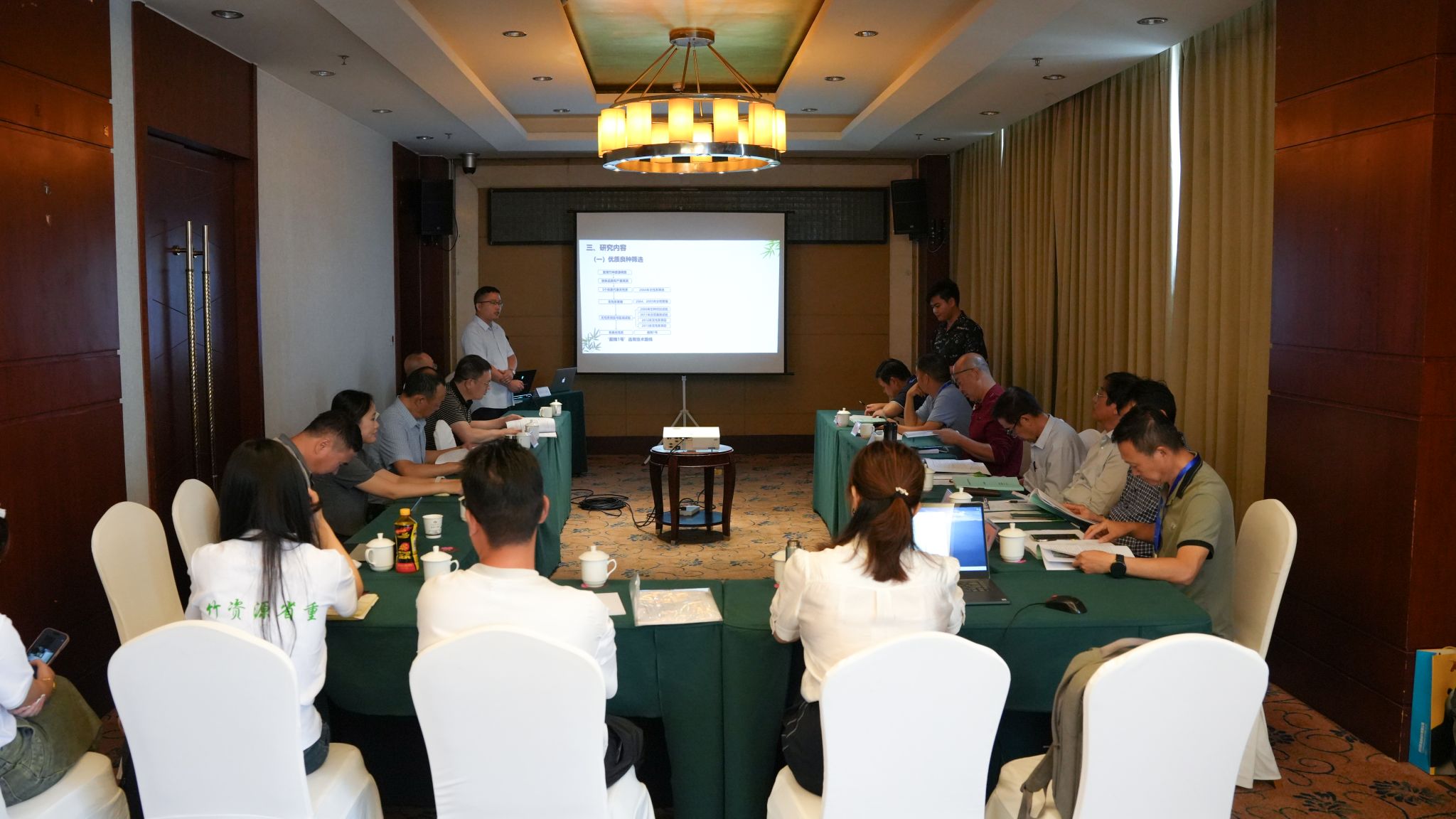 评价专家组由中国林业科学研究院首席科学家杨忠岐教授任组长,国际竹藤中心首席科学家范少辉研究员为副组长,以及国际竹藤中心高志民研究员,西华大学陈祥贵教授,西南大学柴友荣研究员,四川农业大学陈其兵教授、杨伟教授等7名专家组成,专家组听取了项目组的汇报,查阅了相关资料,并进行了质询和讨论。