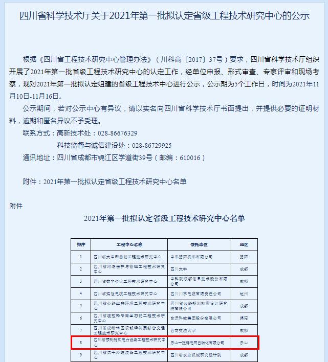 四川省科技厅为贯彻落实《关于促进新型研发机构发展的指导意见》(国科发[2019]313号),根据《四川省工程技术研究中心管理办法》的要求,对2021年各地上报的250余份申报项目,组织开展了第一批省级工程技术研究中心的认定工作,经单位申报、形式审查、专家评审和现场考察,最终确定出第一批认定项目38个,也是乐山市今年唯一获得省级平台立项项目。