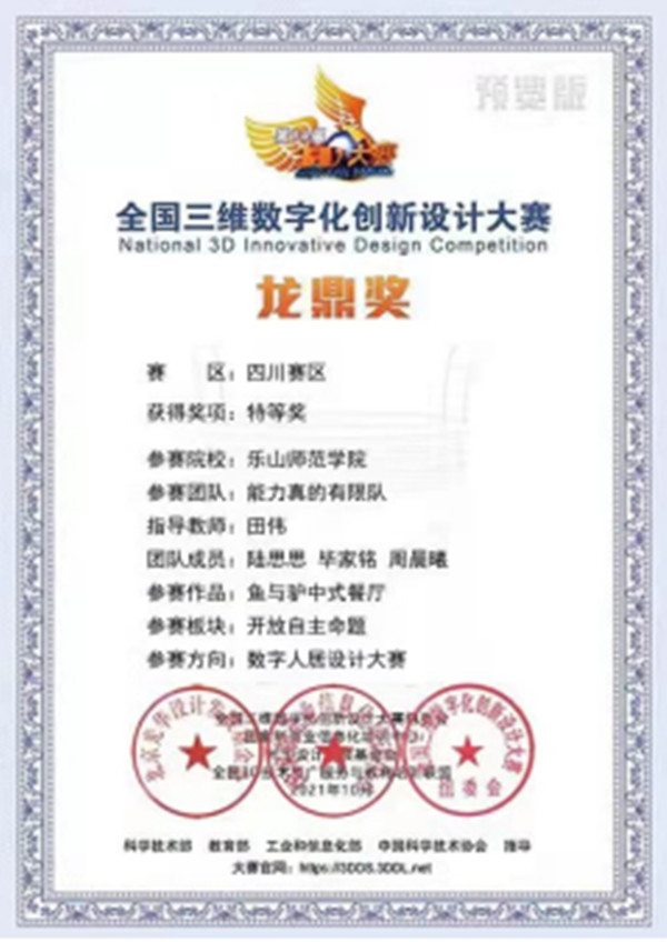 本次3D大赛我校首次参加,很多比赛规则复杂,不同以往的其他比赛形式,通过各团队师生坚持不懈,几个月赛程下来,取得了可喜的成绩,我校在数字人居设计大赛,数字工业设计大赛两个赛道在本次比赛中成绩较为突出。成绩的取得离不开团队学生积极参与、老师的细心指导,学院领导积极推动,学校领导的高度重视。通过此次参赛及获奖,使我校学生创新能力和实践能力得到检验,对未来提升学生的创新能力、学科素养和实践能力非常重要,对我校产学研一体有指引作用,推动教师教学和教育思路改变有重大的指导意义。同时也希望我校其他相关专业加入其中,形成更强的专业团队,希望明年能取得更好的成绩。