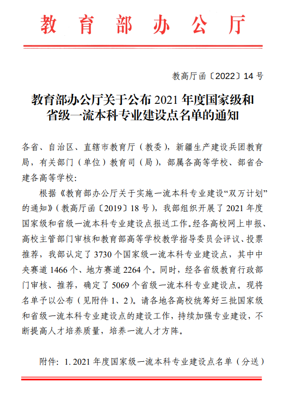 国家级一流本科专业建设点