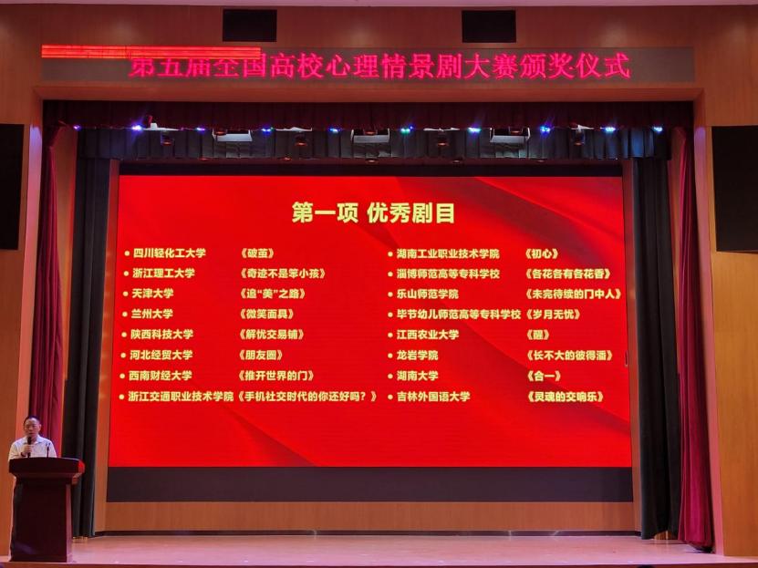本届大赛由中国心理学会心理危机干预工作委员会、全国高校心理委员研究协作组主办,复赛收到了来自全国200多所高校共287个参赛作品,最终排名前30的剧目入围决赛,其中包括天津大学、湖南大学、南京大学、西南科技大学、西南财经大学、福州大学等985、211学校,我校以复赛排名19的成绩入围决赛展演,最终获得优秀剧目32强。