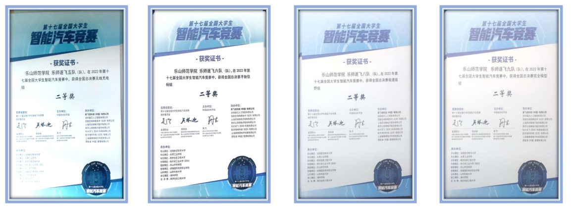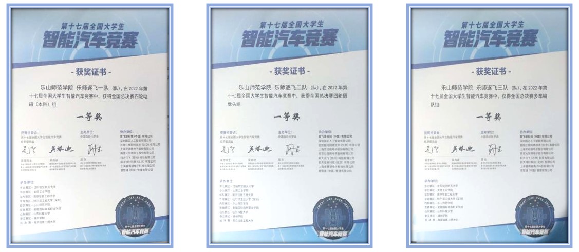 本网讯(文、图/杨济豪)2022年由南京信息工程大学承办的第十七届全国大学生智能汽车竞赛近期顺利落下帷幕。由我校电子信息与人工智能学院学生组建的七支队伍在杨济豪、李富钢二位老师的指导下,凭借扎实的专业素养、严谨的学术态度、吃苦耐劳的精神、顽强拚搏的斗志在此次竞赛中脱颖而出,共荣获全国一等奖3项,二等奖4项,参赛队伍全部获奖,创下我校参加全国大学生智能汽车竞赛以来的历史最好成绩。其中荣获全国一等奖获奖队伍分别是:多车编队组、四轮电磁组、四轮摄像头组,荣获全国二等奖获奖队伍分别是:完全模型组、无线充电组、平衡信标组、极速越野组。